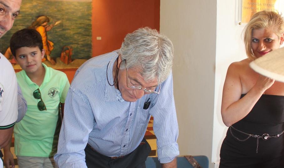 Ο Δήμαρχος Σύρου – Ερμούπολης Γιώργος Μαραγκός και η Αντιδήμαρχος Πολιτισμού Θωμαή Μενδρινού καλωσόρισαν το κοινό, απευθύνοντας θερμές ευχαριστίες τόσο στον κ. Κομνηνό για την ευγενική χορηγία του, όσο και στον κ. Γιώργο Αλτουβά για την πολύτιμη συμβολή του στην πραγματοποίηση της έκθεσης.