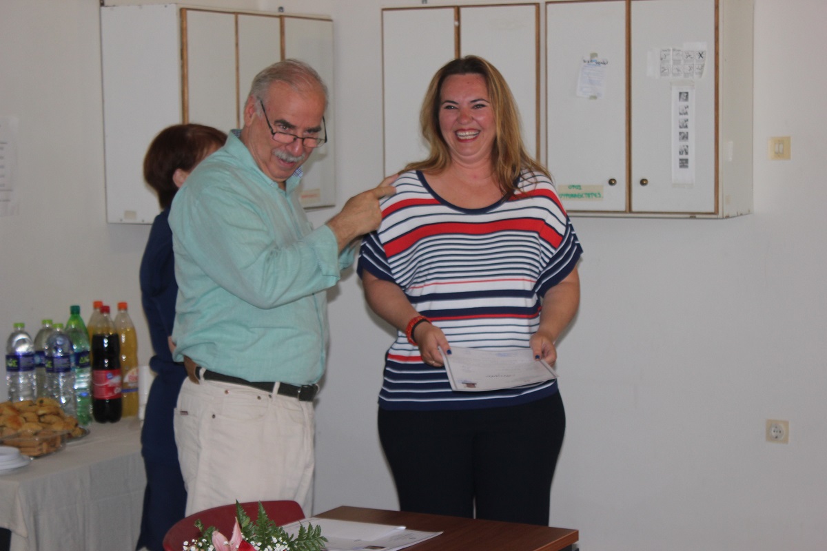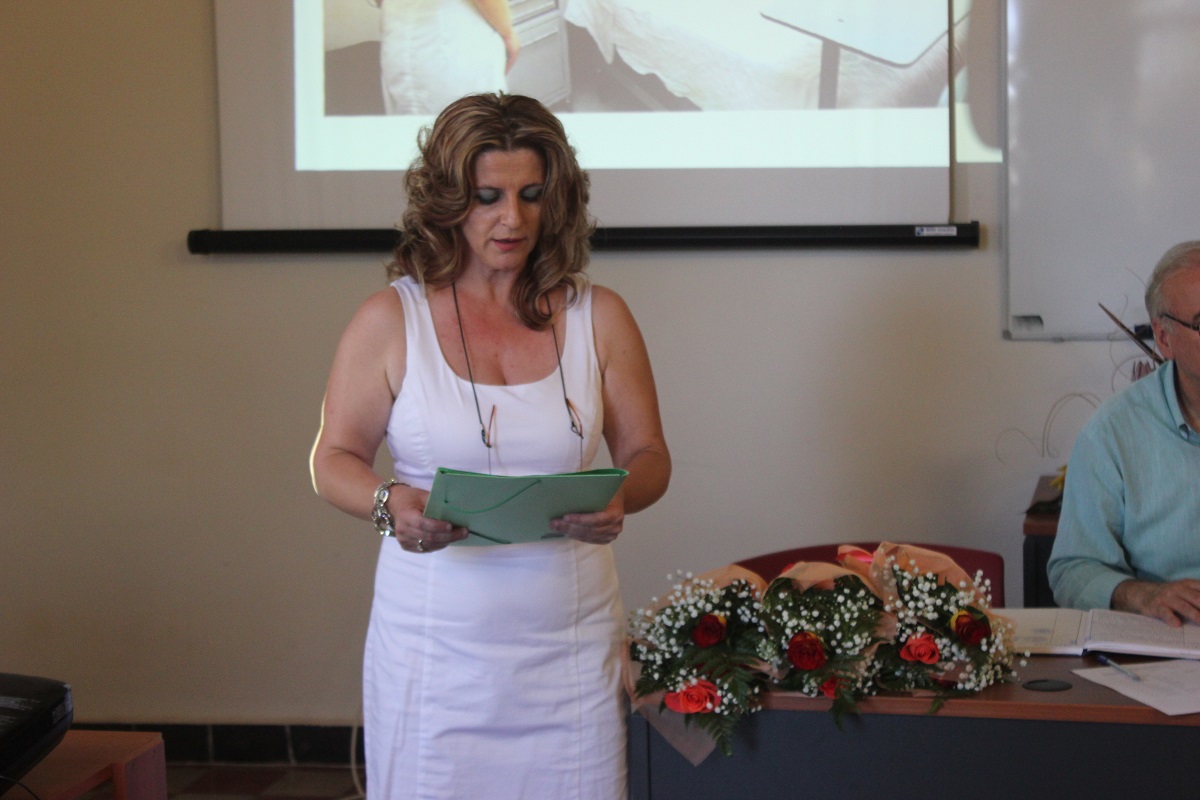 Στον σύντομο χαιρετισμό της, η Διευθύντρια της Σχολής κ. Ευγενία Νίκου απηύθυνε εγκάρδιες ευχαριστίες στο σύνολο των καθηγητών, που προσέφεραν εθελοντικά τις γνώσεις και τις εμπειρίες τους. Στη συνέχεια, συνεχάρη τους αποφοίτους, οι οποίοι παρά τις δυσκολίες και τις οικογενειακές υποχρεώσεις τους, κατάφεραν να ολοκληρώσουν με επιτυχία τις σπουδές τους, επιθυμώντας να ασκήσουν ένα από τα πιο αγαπητά επαγγέλματα του πλανήτη που σχετίζεται με τον ίδιο τον άνθρωπο.