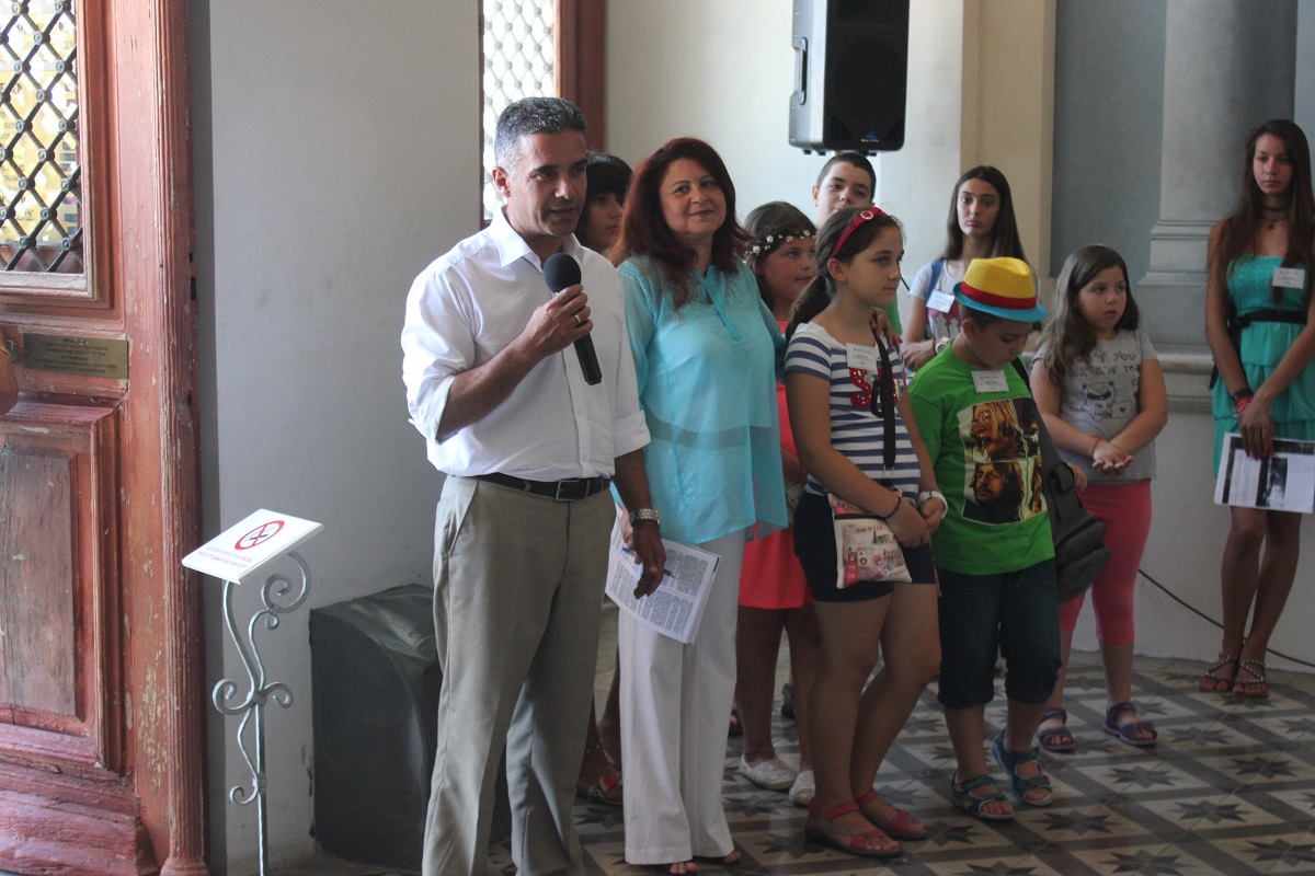 Στη συνέχεια, οι επισκέπτες του νησιού ξεναγήθηκαν στο Δημαρχιακό Μέγαρο από τους μικρούς εθελοντές, και γνώρισαν τα πάντα γύρω από το αρχιτεκτονικό αυτό κόσμημα με την υπογραφή του Ερνέστου Τσίλλερ.
