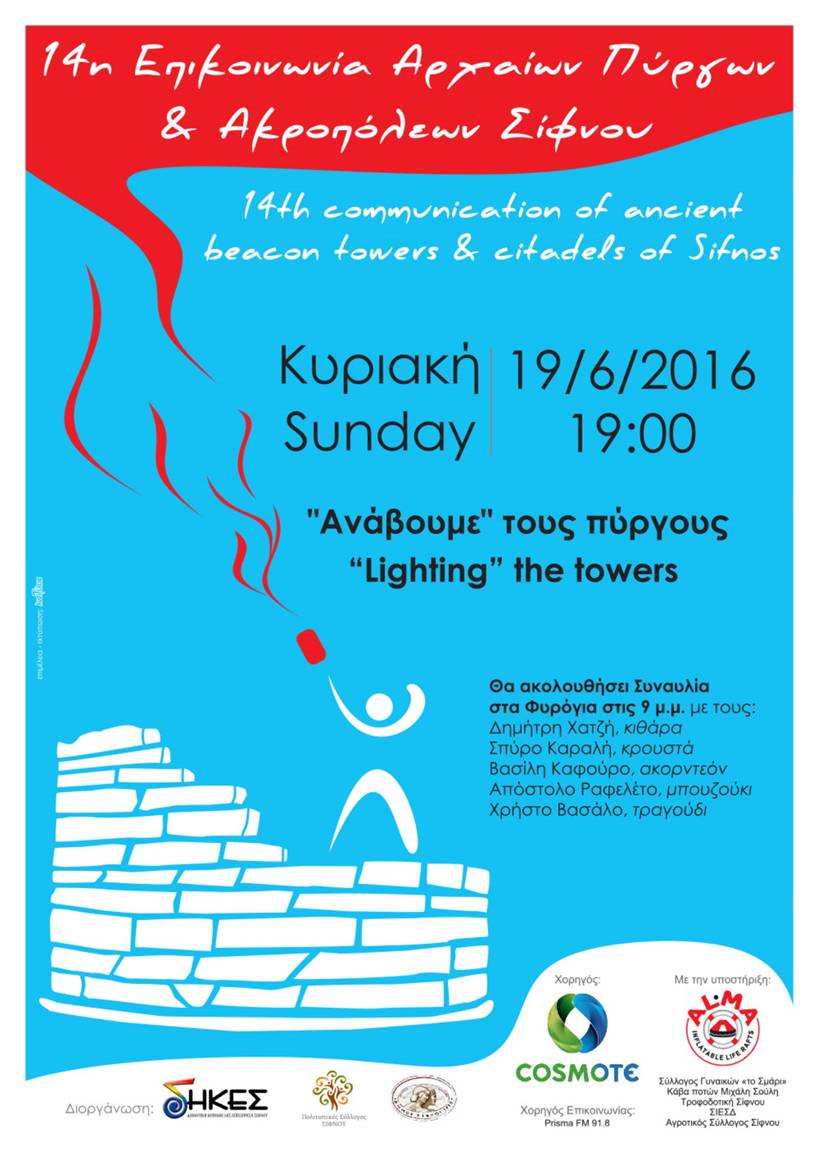 Για 14η χρονιά, ο Δήμος Σίφνου, η Κοινωφελής του Επιχείρηση και ο Πολιτιστικός Σύλλογος Σίφνου και εκατοντάδες εθελοντές αναβιώνουν το αρχαίο σύστημα επικοινωνίας των φρυκτωριών σε περισσότερα από 80 σημεία σε όλο το νησί.