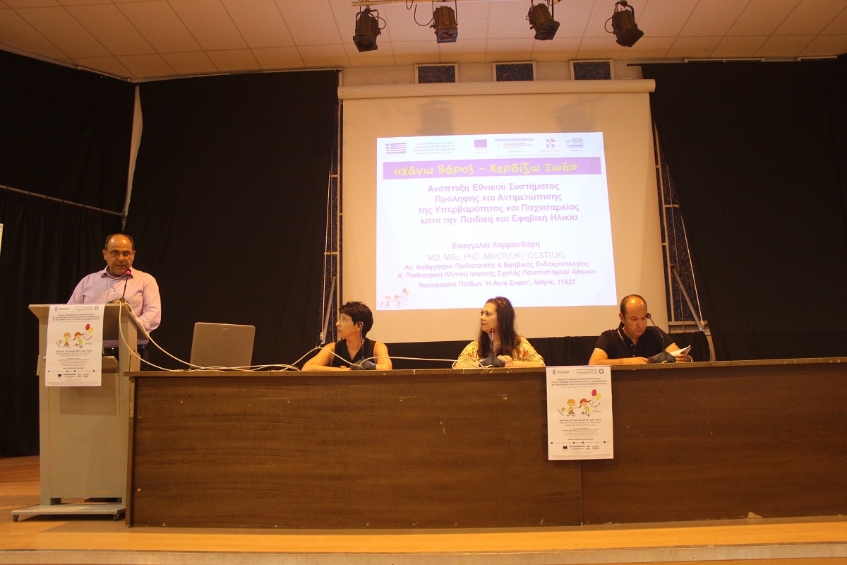 Ενημερωτική εκδήλωση για την Πρόληψη και Αντιμετώπιση της Υπερβαρότητας και Παχυσαρκίας κατά την Παιδική και Εφηβική Ηλικία πραγματοποίησε χθες στη Σύρο η Α΄ Παιδιατρική Κλινική της Ιατρικής Σχολής του Εθνικού Καποδιστριακού Πανεπιστημίου Αθηνών.