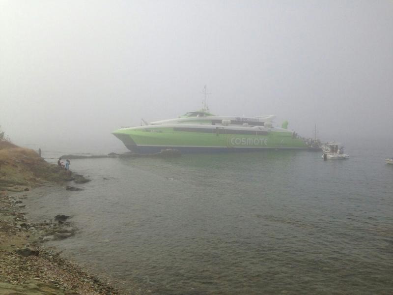 Προσάραξη σε αβαθή, σε θαλάσσια περιοχή λίγο έξω από το λιμάνι της Τήνου, του ταχύπλοου Flying Cat 4 της εταιρείας Hellenic seaways, με αιτιολογία για το ατυχές συμβάν, την πυκνή ομίχλη που επικρατούσε εκείνη την ώρα στην περιοχή.
