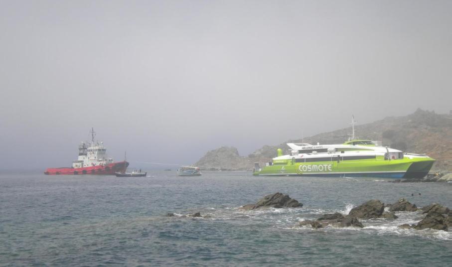 Άμεσο αίτημα υπήρξε από την πλευρά της εταιρείας για μετάβαση ρυμουλκού πλοίου στο σημείο και συγκεκριμένα το ρυμουλκό Armadores το οποίο κατέπλευσε στην Τήνο από τη Μύκονο, προκειμένου να βοηθήσει στην ρυμούλκηση του καταμαράν.