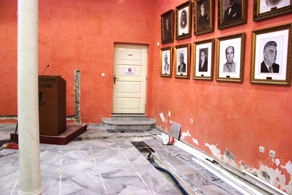 Σχετικά με την εκκίνηση των εργασιών, ο κ. Ρούσσος εξήγησε, ότι «πρόκειται για ένα έργο, που το Επιμελητήριο Κυκλάδων διεκδίκησε από το 2010 και μετά από μια δύσκολη, απίστευτα χρονοβόρα ταλαιπωρία, αλλά και μεγάλη επιμονή του Επιμελητηρίου, γύρισε ένα αρκετά μεγάλο ποσό χρημάτων, από αυτά που είχαν συγκεντρωθεί στο κέντρο, από όλες τις Περιφέρειες της χώρας, αλλά και την Περιφέρεια Νοτίου Αιγαίου, ειδικά για εμάς. Η Περιφέρεια προκήρυξε ένα έργο, το οποίο υλοποιούμε τώρα, πλέον, αυτή την περίοδο, μετά από τόσα χρόνια», ενώ για το εύρος των εργασιών υπογράμμισε, πως «αυτό το έργο, προέκυψε μετά από διεθνείς διαγωνισμούς – το συγκεκριμένο το έχει αναλάβει ο ΟΤΕ – με 60 υπεργολάβους. Ένα κομμάτι αυτού του έργου είναι και η ανακατασκευή της συνεδριακής αίθουσας».