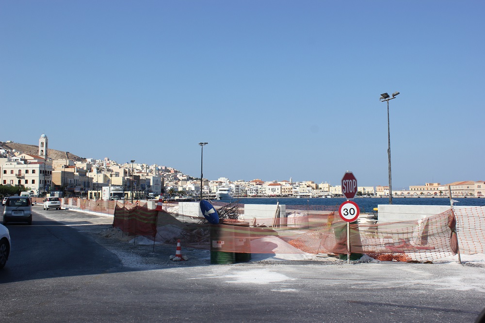 Όπως έχει αποδειχθεί μέχρι σήμερα, το αρχικό αυστηρό χρονοδιάγραμμα της εκτέλεσης του έργου της ανάπλασης της παράκτιας ζώνης του λιμένα Ερμούπολης έχει αποτελέσει προ πολλού παρελθόν και τη θέση του έχει καταλάβει η ανησυχία των επιχειρηματιών του παραλιακού τμήματος αλλά και μία σειρά από νέα δεδομένα, ανάμεσα στα οποία και η απόφαση να μη δοθεί στην κυκλοφορία το τμήμα του οδοστρώματος στο οποίο έχουν συντελεστεί εργασίες, αφού χωρίς την τελική επίστρωση, όπως εξήγησε ο αντιδήμαρχος Τεχνικών Υπηρεσιών στην “Κοινή Γνώμη”, Σταύρος Γουσγουνέλης, η χρήση του θα προκαλούσε “σύννεφο” προβλημάτων.