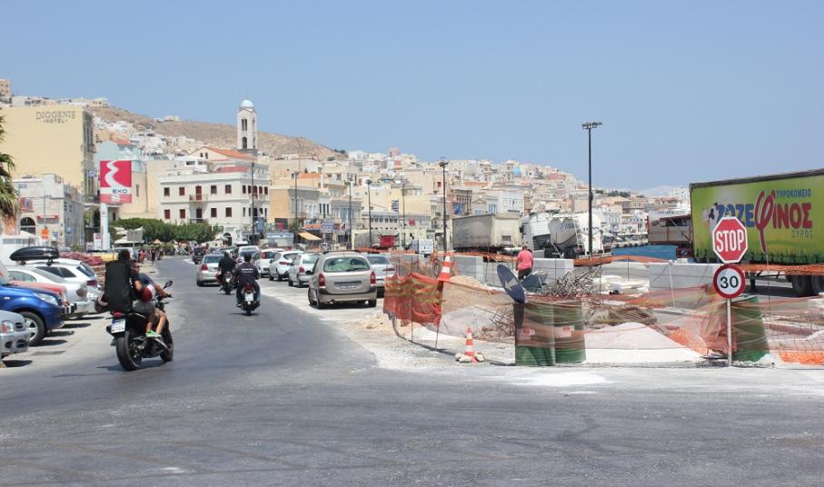 Την πλέον κάκιστη εικόνα αντικρίζει ο κάθε πολίτης κι επισκέπτης της Σύρου κατά την άφιξή του στο λιμάνι της Ερμούπολης, με τις εργασίες της Α΄ φάσης να μην έχουν διεκπεραιωθεί αρχές Αυγούστου, ενώ το σημείο του εργοταξίου που έχει δοθεί στη διάθεση των οδηγών να έχει μετατραπεί σε χώρο στάθμευσης, όπου συνωστίζονται καθημερινά δεκάδες οχήματα και δίκυκλα.