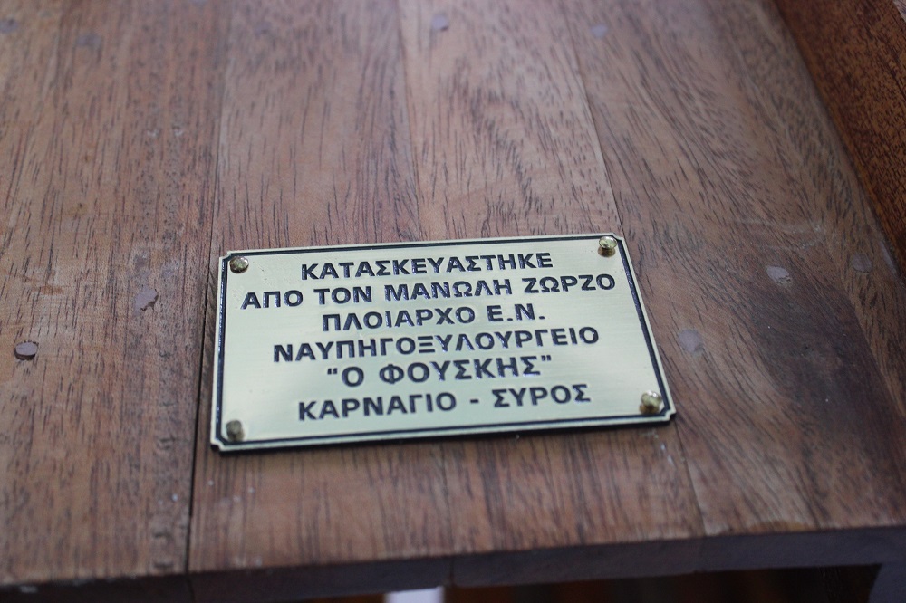 Μανώλης Ζώρζος: “Είναι ένα αντίγραφο (σε κλίμακα) των παραδοσιακών ξύλινων σκαφών. Προέκυψε αυτή η επιθυμία, με δεδομένο ότι χάνονται με τον χρόνο τα ξύλινα σκάφη, όχι μόνον λόγω φθοράς αλλά κι εξαιτίας νέων νομοθεσιών, με τις οποίες επιβάλλεται η καταστροφή τους. Σκέψη μου ήταν να δω τί μπορώ να κάνω ώστε να σώσουμε κάτι από όλη αυτήν την τέχνη. Προσωπικά επέλεξα να αξιοποιήσω την εμπειρία που διαθέτω αφού μεγάλωσα σε ένα μικρό ναυπηγείο προκειμένου να φτιάξω αυτό το σκαρί και να αποτελέσει ένα “ζωντανό” βιβλίο για την τέχνη των ναυπηγο-μαραγκών.