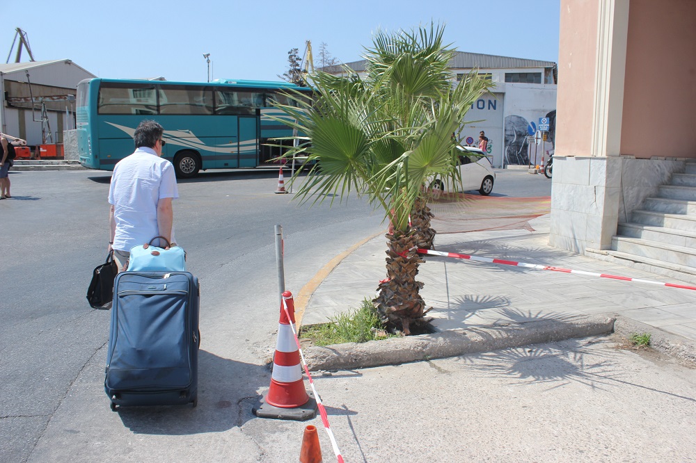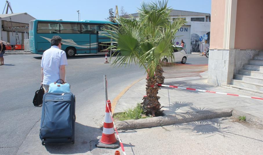 Χαρακτηριστική εικόνα αποτελεί η διέλευση επισκέπτη ο οποίος φέρει μαζί του τις αποσκευές του και βαδίζει στο οδόστρωμα.