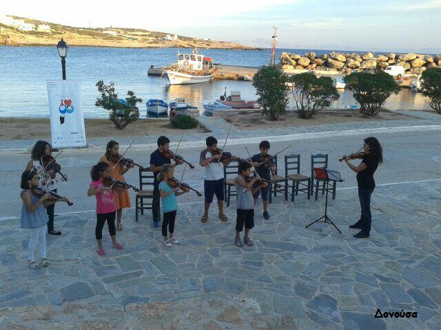 Είναι ο επόμενος Paganini από τις Μικρές Κυκλάδες; Αν δεν πιάσει βιολί πώς θα το μάθουμε; Γιαυτό τον λόγο η «Αγονη Γραμμή Γόνιμη» αποβιβάστηκε στην Σχοινούσα, τη Δονούσα και το Κουφονήσι. Μέσα από ένα μοναδικό σεμινάριο κλασικού βιολιού, μαθητές χωρίς προηγούμενη μουσική εμπειρία, έκαναν τα πρώτα τους βήματα. Το Γυμνάσιο Σχοινούσας έλαβε δώρο 15 βιολιά.