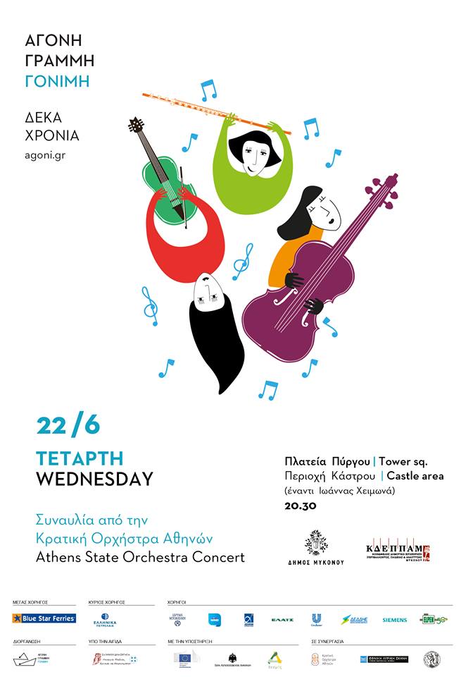 Οι δράσεις της “Άγονης Γραμμής Γόνιμης” στη Μύκονο ολοκληρώνονται αύριο το βράδυ με τη συναυλία της Κρατικής Ορχήστρας Αθηνών στην Πλατεία Πύργου της περιοχής Κάστρου στις 20:30.