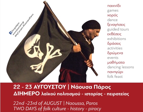 Το χωριό της Νάουσας και η εθελοντική ομάδα «Κουρσάροι» καλούν τους επισκέπτες της Πάρου να γνωρίσουν τη γειτονιά τους, μέσα από ένα διήμερο λαϊκού πολιτισμού, ιστορίας και πειρατείας στις 22 & 23 Αυγούστου.