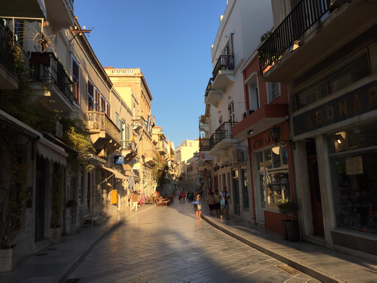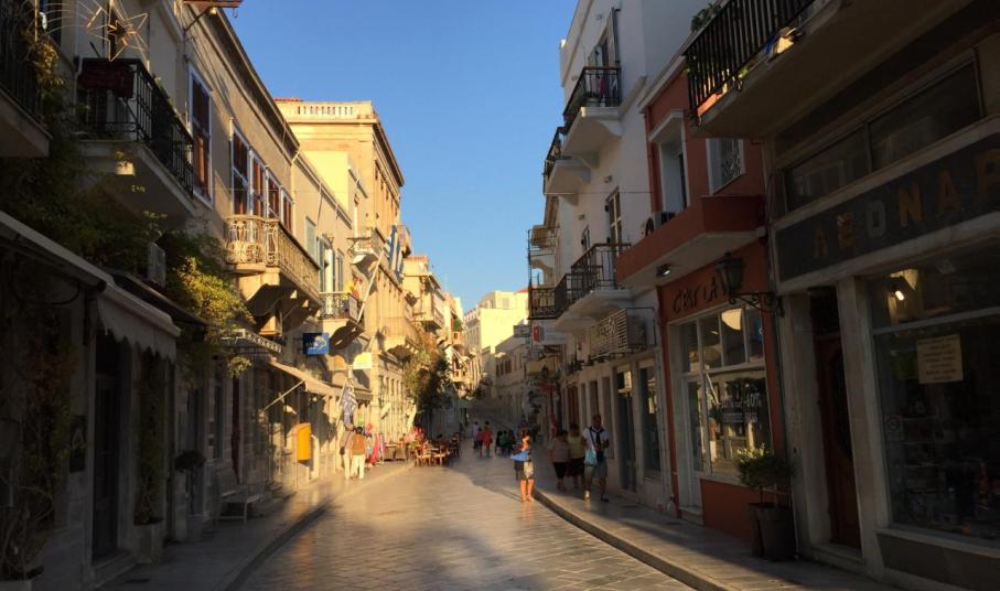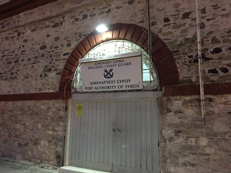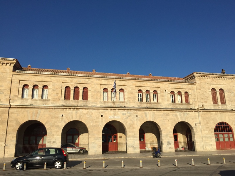 Γυρίζω το κεφάλι μου για να δω τι αντικρίζουν οι επιβάτες του κρουαζιερόπλοιου μόλις βγουν από το πλοίο. Το κτίριο του Τελωνείου. Έρημο, κλειστό, ξεφτισμένα κουφώματα , παρκαρισμένα υπηρεσιακά αυτοκίνητα ακόμα και στην στοά . Η θέση του κτιρίου δεσπόζουσα στο λιμάνι. Η αρχιτεκτονική του χαρακτηριστική , παραπέμπει σε εποχές δόξας και μεγαλείου του νησιού. Θα περίμενες να αποτελεί το τέλειο σημείο υποδοχής επισκεπτών κρουαζιέρας. Ανθρώπων δηλαδή που δαπανούν κατά τεκμήριο σημαντικό ποσό για να απολαύσουν την πολυτέλεια και την εμπειρία μιας κρουαζιέρας. Αντιθέτως στεγάζει, όπως αναγράφουν οι πινακίδες, υπηρεσίες άσχετες με την θέση του κτιρίου
