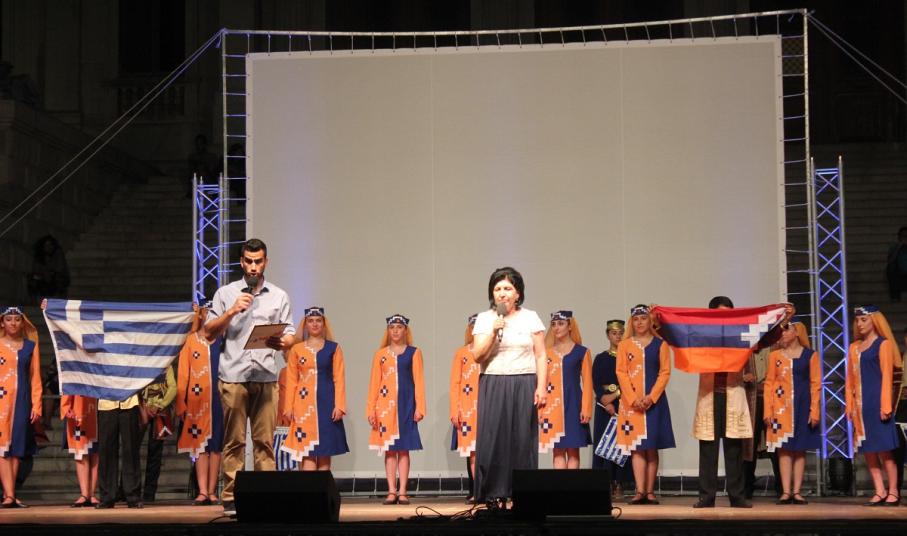 Στην έναρξη της εκδήλωσης προβλήθηκε 10λεπτο video με χαιρετισμό από τον Πρόεδρο της Δημοκρατίας του Ναγκόρνο-Καραμπάχ κ. Πάκο Σαακιάν, ο οποίος τόνισε ότι η εικοσαετής φιλοξενία ορφανών παιδιών αγωνιστών από το Ναγκόρνο Καραμπάχ στη Σύρο αποτελεί την απόλυτη έκφραση των φιλικών και φιλάνθρωπων συναισθημάτων του νησιού και απόδειξη της μακρόχρονης φιλίας ανάμεσα στον ελληνικό και αρμενικό λαό. «Οι λαοί μας έχουν κοινή ιστορία, κοινές προσλαμβάνουσες. Ελληνικός και αρμένικος λαός είναι εκπρόσωποι των αρχαίων πολιτισμών που επί αιώνες αγωνίζονται για την ελευθερία, ανεξαρτησία και τη δικαιοσύνη. Είμαι πεπεισμένος ότι οι δεσμοί των λαών μας, εφόσον βασίζονται στον αμοιβαίο σεβασμό και την αλληλεγγύη θα είναι άρρηκτοι», κατέληξε ο κ. Σαακιάν, ενώ ακολούθησε χαιρετισμός και από την Υπουργό Πολιτισμού και Νεολαίας κ. Νάρινε