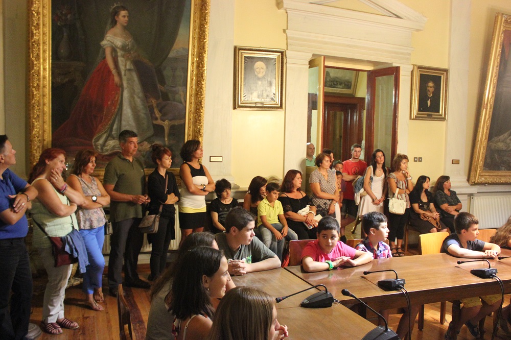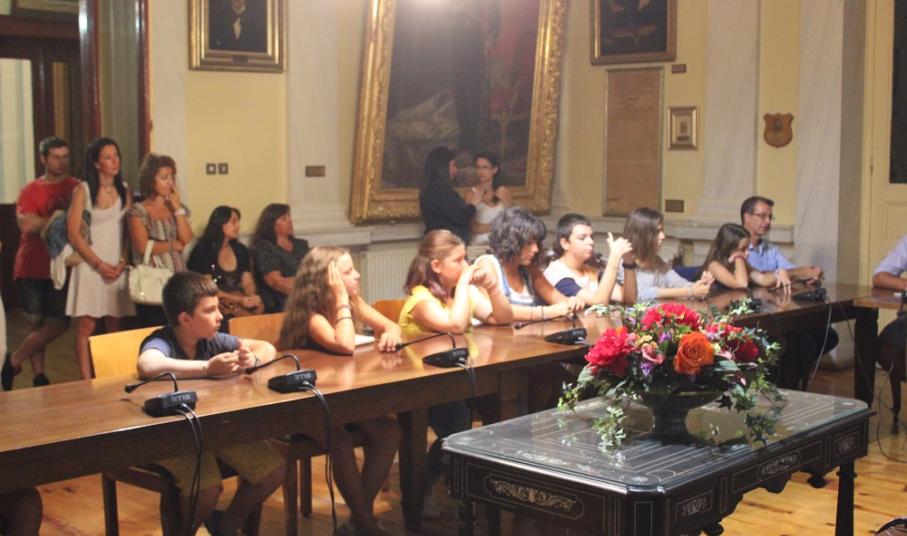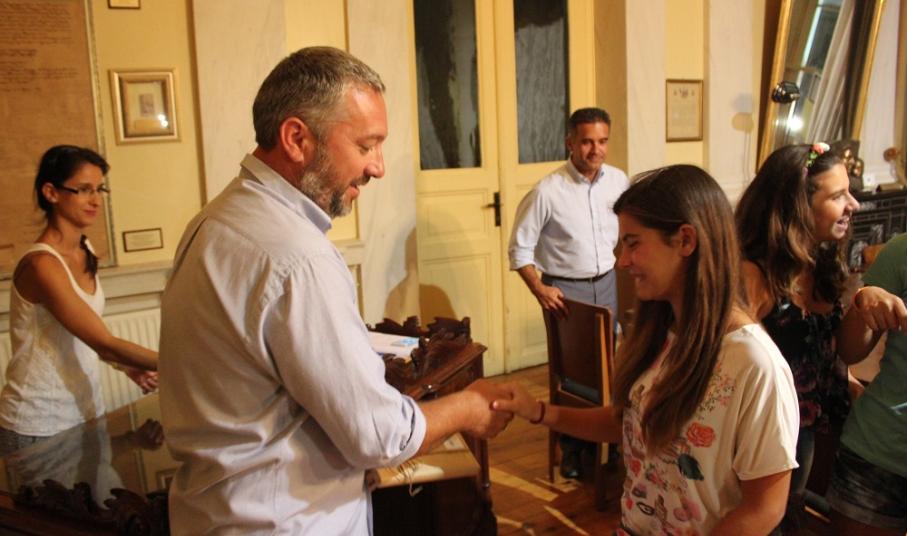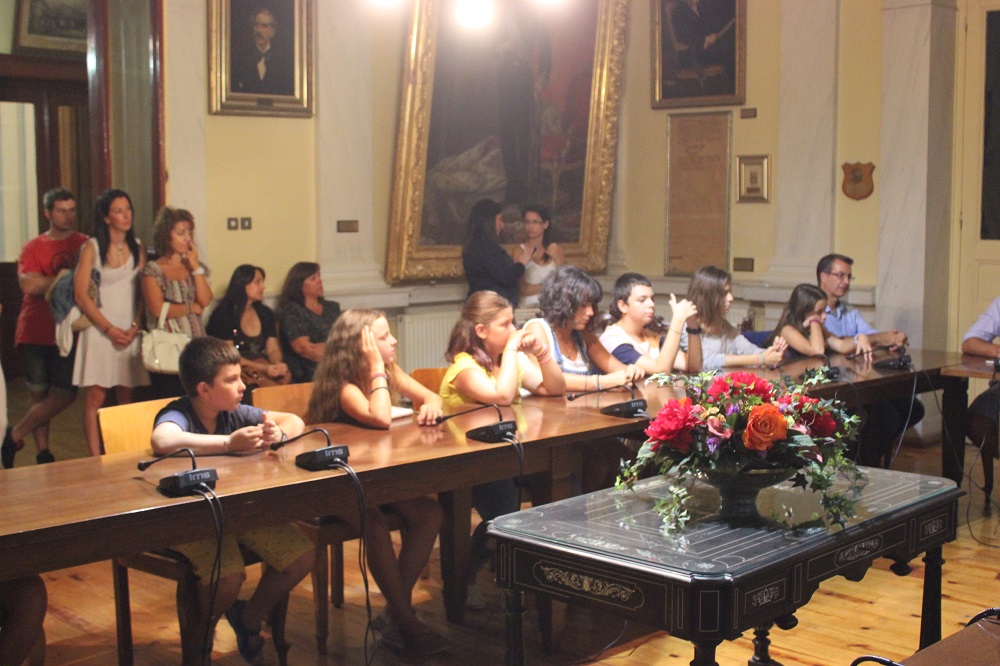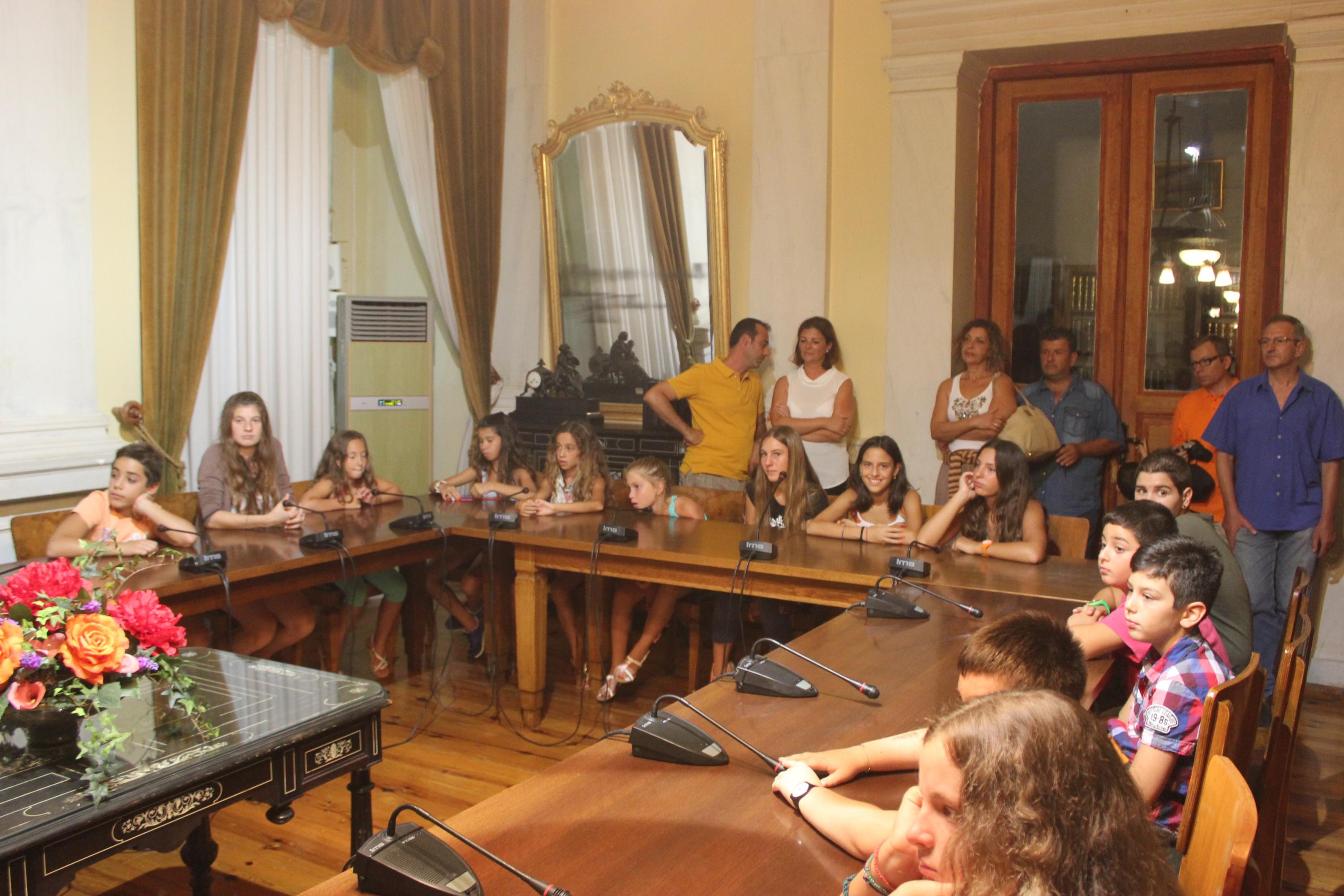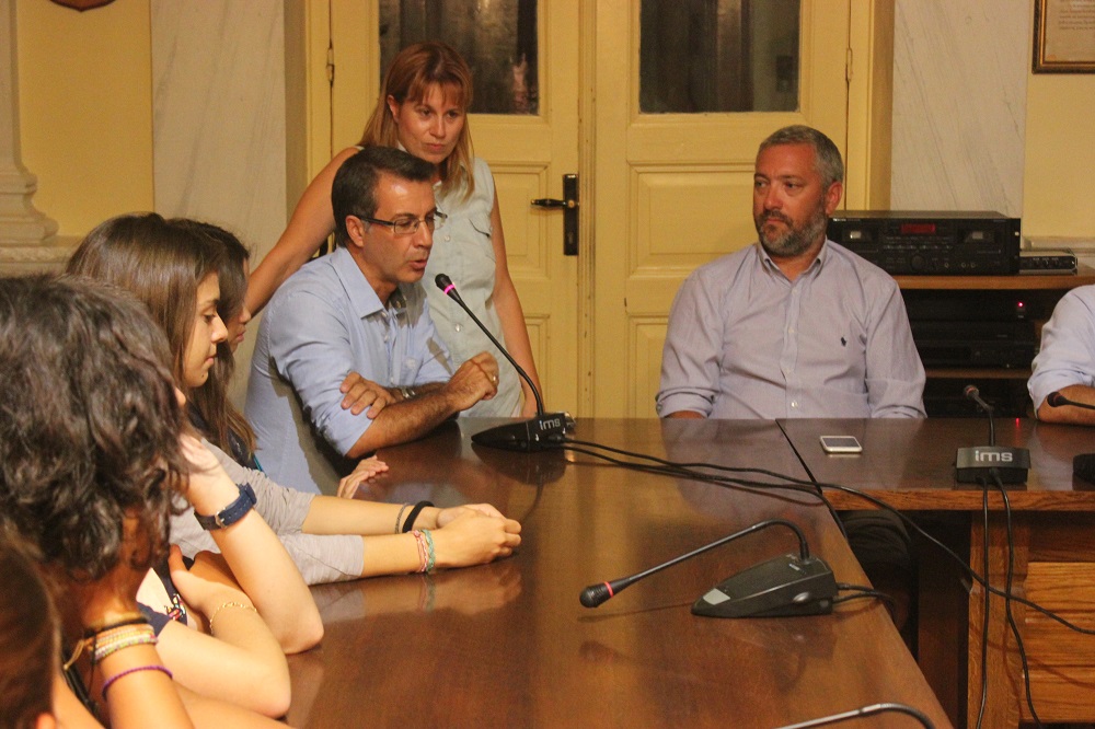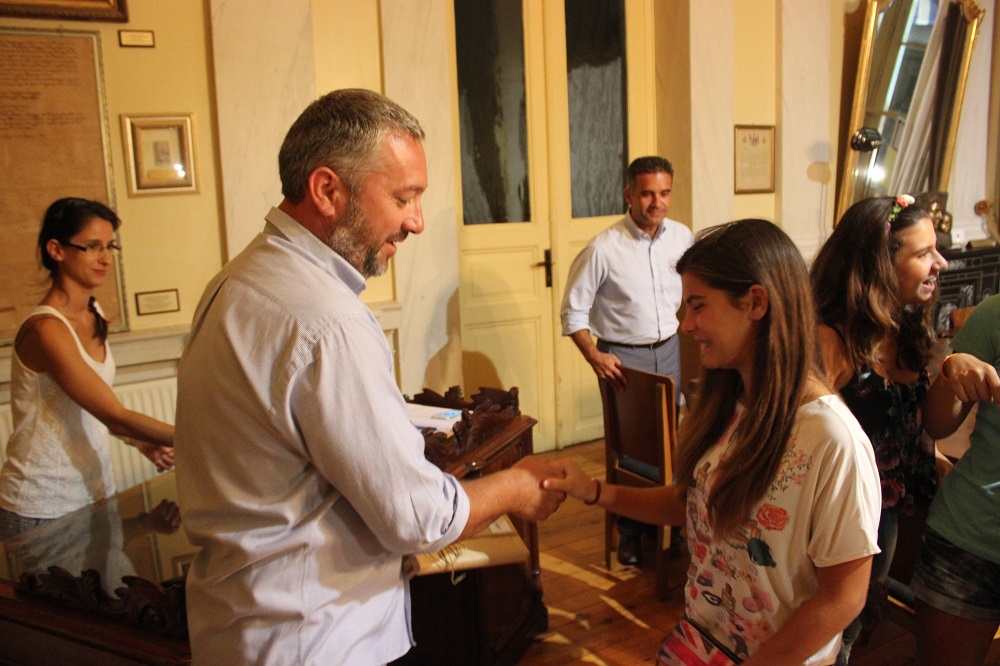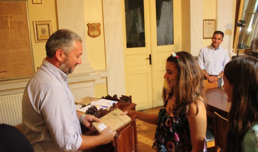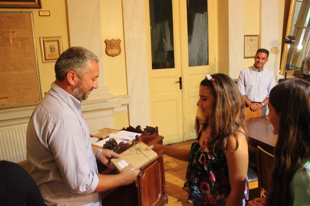 Στην αίθουσα του δημοτικού συμβουλίου ο δήμαρχος Γιώργος Μαραγκός, η αντιδήμαρχος Πολιτισμού, Θωμαή Μενδρινού καθώς επίσης και ο δημοτικός σύμβουλος, Γουλιέλμος Πρίντεζης χαιρέτησαν την αστείρευτη προσφορά των μικρών ξεναγών, οι οποίοι συστήνουν την ιστορία του τόπου στους επισκέπτες του νησιού και με τη σειρά τους αποτελούν τις ξεχωριστές εκείνες προσωπικότητες που με τις γνώσεις τους, καταφέρνουν συστηματικά - όχι μόνον να “κλέβουν” τις εντυπώσεις -, αλλά να αποτελούν και τη βασική μαγιά των πλείστων αναφορών που έχουν υπάρξει και φιλοξενούνται κατά καιρούς σε μεγάλα και ξένα έντυπα, προβάλλοντας το νησί.