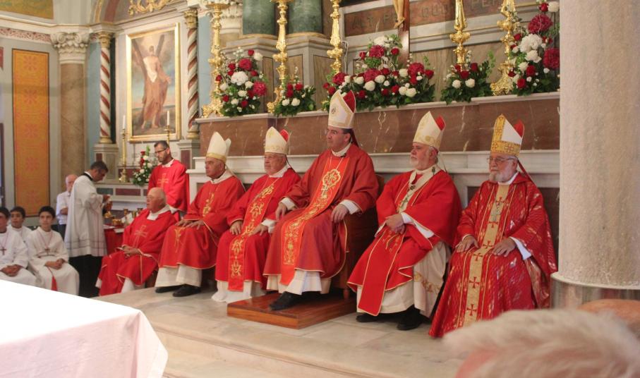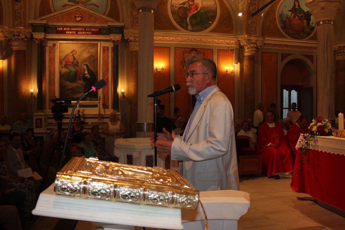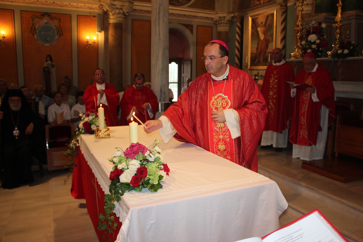 Στην τελετή προΐστατο ο Καθολικός Επίσκοπος Σύρου Σεβασμιώτατος π. Πέτρος Στεφάνου, με Συλλειτουργούς τον Καθολικό Αρχιεπίσκοπο Αθηνών και αποστολικό Τοποτηρητή της Καθολικής Αρχιεπισκοπής Ρόδου π. Σεβαστιανό Ροσσολάτο, τον πρώην Καθολικό Αρχιεπίσκοπο Αθηνών π. Νικόλαο Φώσκολο, τον Σεβασμιώτατο Αρχιεπίσκοπο Νάξου - Τήνου π. Νικόλαο Πρίντεζη, τον πρώην Καθολικό Επίσκοπο Σύρου και σημερινό Πρόεδρο της Ιεράς Συνόδου της Καθολικής Ιεραρχίας της Ελλάδας π. Φραγκίσκο Παπαμανώλη και τους ιερείς της Εκκλησιαστικής Επαρχίας.