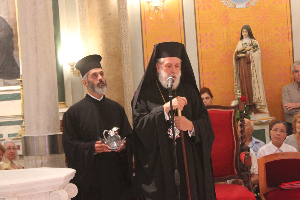 “Θα ήθελα, αρχικά, να ευχαριστήσω τον Σεβασμιώτατο προκάτοχό μου π. Φραγκίσκο Παπαμανώλη, στον οποίον ανήκει περισσότερο η θέση στην οποία αυτή τη στιγμή βρίσκομαι εγώ, γιατί είναι εκείνος που εργάστηκε άοκνα και κόπιασε για 12 περίπου χρόνια, ώστε να φτάσουμε σήμερα σε αυτό το αποτέλεσμα. Από τη θέση αυτή θέλω να απευθύνω ένα μεγάλο ευχαριστώ στον κ. Ιωσήφ Στεφάνου και στην ομάδα του. Ευχαριστίες απευθύνω και σε όλους εκείνους που συνέβαλαν, ο καθένας στον τομέα του, για την επιτυχή ολοκλήρωση αυτού του τόσο μεγάλου έργου”.