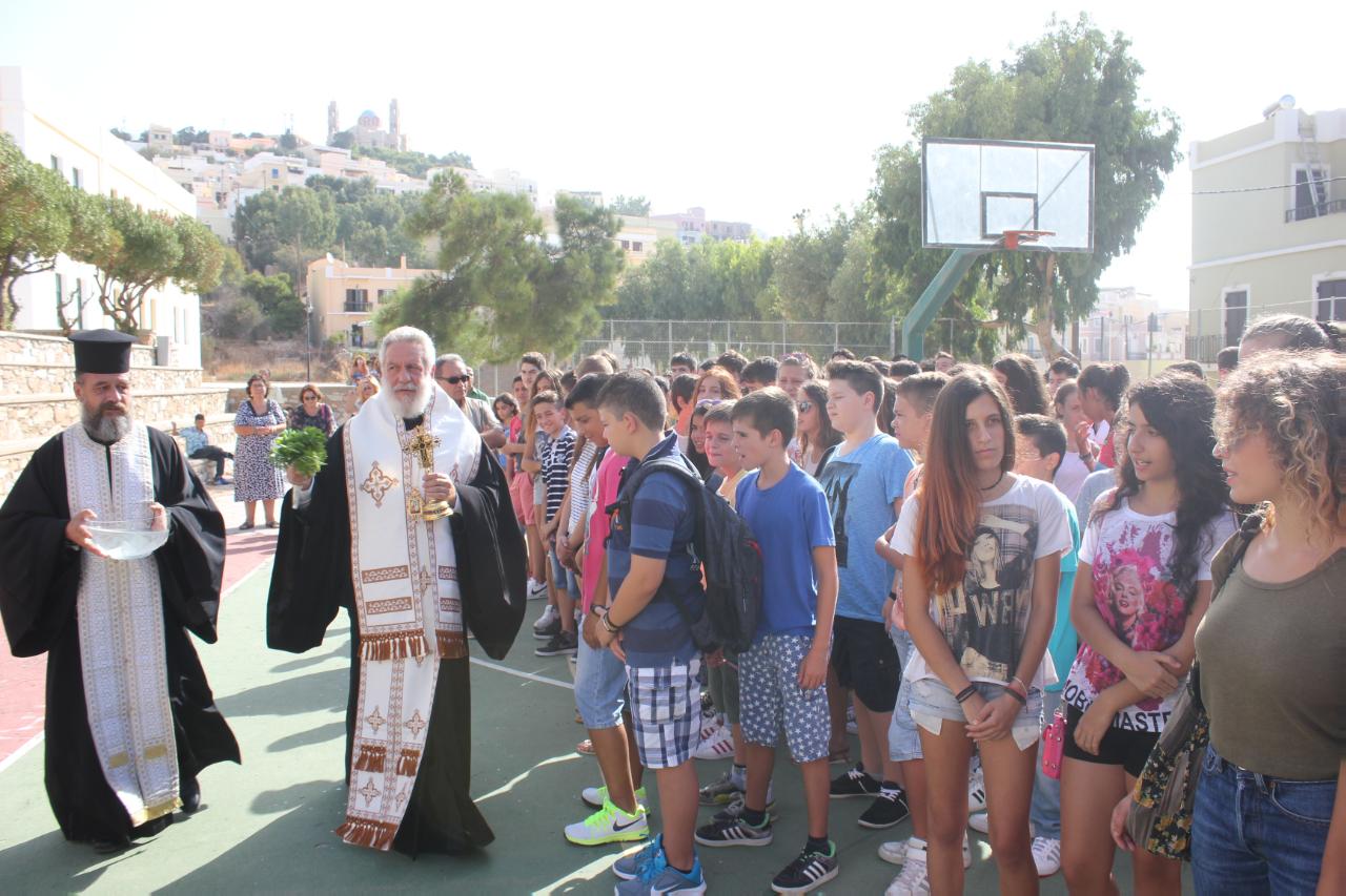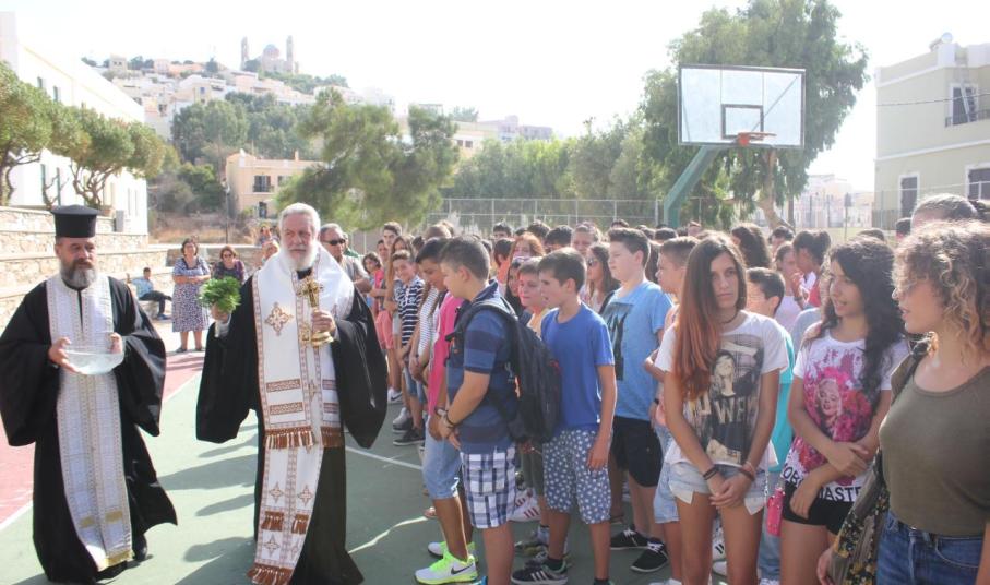 Λίγο νωρίτερα από τις 9, οι μαθητές με τους γονείς τους αφίχθησαν στα νηπιαγωγεία και τα δημοτικά σχολεία του νησιού προκειμένου να συμμετάσχουν στην έναρξη του νέου σχολικού έτους, κατά τη διάρκεια της οποίας, ιερείς της Ορθόδοξης και της Καθολικής Εκκλησίας μετέδωσαν εγκάρδιες ευχές προς τη μαθητική κι εκπαιδευτική κοινότητα.