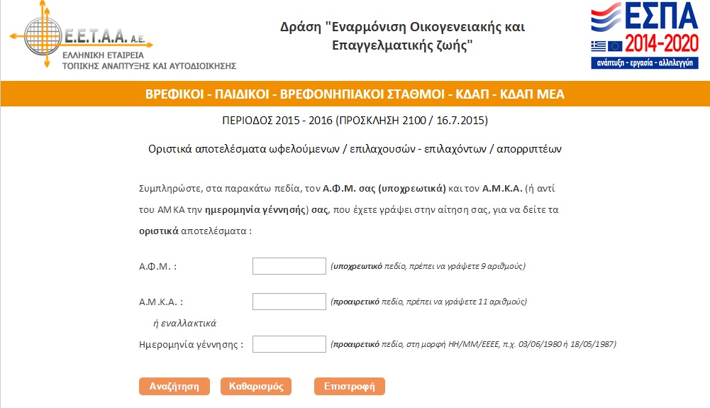 Αναρτήθηκαν οι οριστικές λίστες των ωφελούμενων γονέων που επιχορηγούνται από το Πρόγραμμα “Εναρμόνιση Επαγγελματικής και Οικογενειακής Ζωής” μέσω της Ελληνικής Εταιρείας Τοπικής Ανάπτυξης και Αυτοδιοίκησης (ΕΕΤΑΑ) στη σχετική ιστοσελίδα της, με τους αρμόδιους του Δήμου Σύρου – Ερμούπολης να έχουν ολοκληρώσει την τελική αξιολόγηση και να ενημερώνουν σχετικά τους ενδιαφερόμενους γονείς.