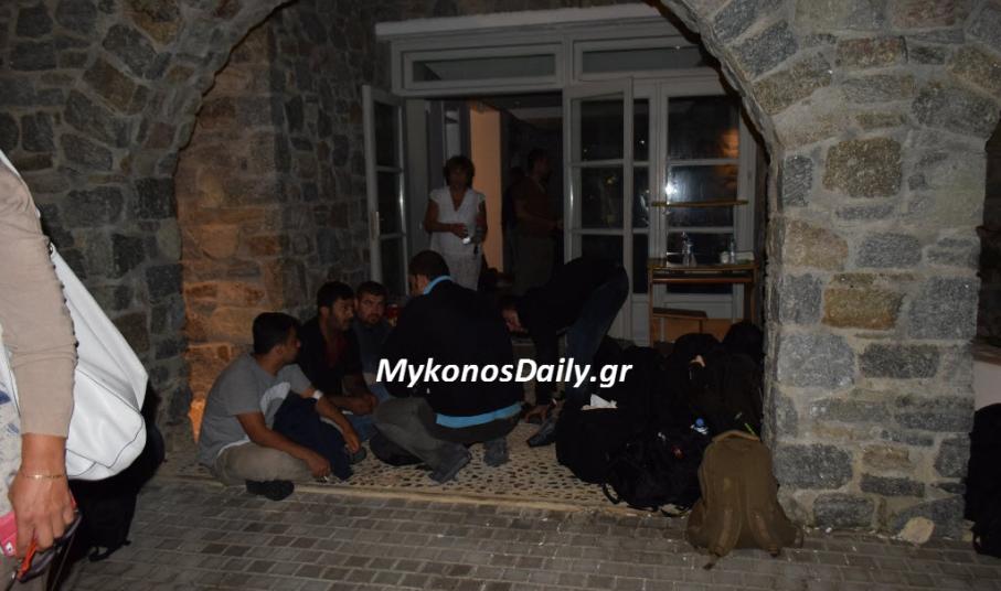 Από το Δήμο Μυκόνου, παρασχέθηκε για την στέγαση των προσφύγων, κτίριο του Λιμενικού Ταμείο στο νέο λιμάνι, όπου και εγκαταστάθηκαν, χωρίς κανένα πρόβλημα, ή την εκδήλωση κάποιου επεισοδίου. Σύμφωνα δε, με όσα είδαν το φως της δημοσιότητας, η εξάντληση των προσφύγων ήταν τέτοια, που νωρίς το βράδυ, οι περισσότεροι είχαν ήδη αποκοιμηθεί.