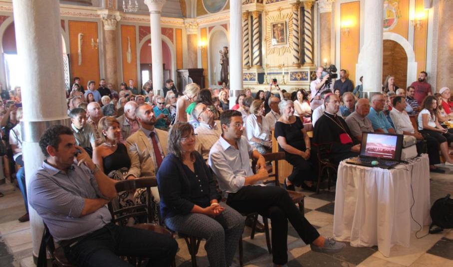 Στον ανακαινισμένο Ιερό Ναό του Αγίου Γεωργίου στην Άνω Σύρο υποδέχτηκαν τους συμμετέχοντες τόσο του Διεθνούς Συνεδρίου Ιστορικών Πόλεων της ICOMOS, όσο και του 5ου Διαπανεπιστημιακού Σεμιναρίου Βιώσιμης Ανάπτυξης Και Πολιτισμού, η Καθολική Επισκοπή Σύρου και το Ινστιτούτου Σύρου.