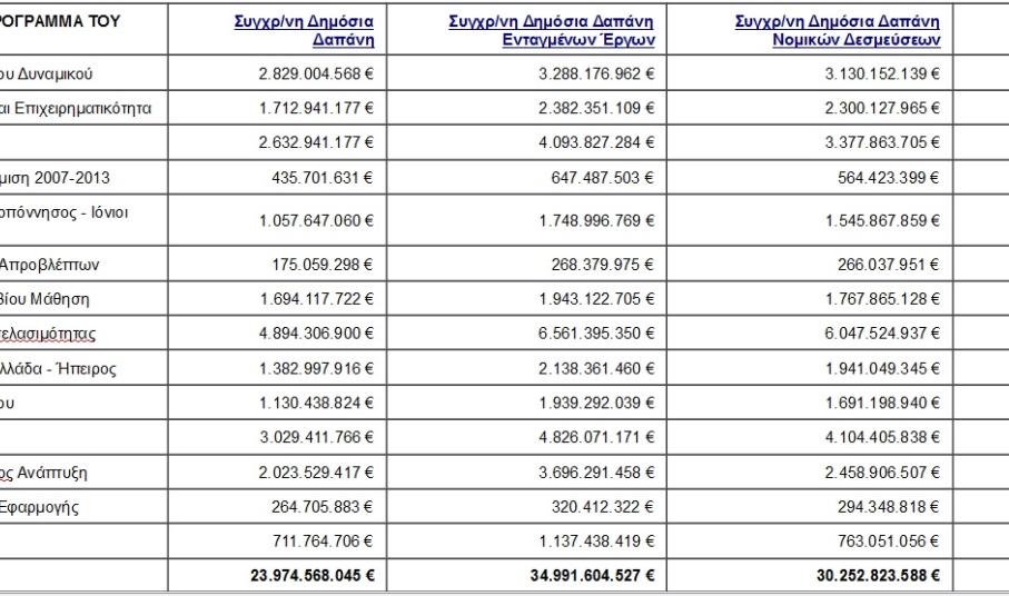 Έως σήμερα έχουν καταγραφεί από 161 Δήμους (στους μισούς από τους 325) της Ελλάδας, ότι υπάρχουν 478 έργα με ανεκτέλεστο υπόλοιπο 736.232.998 ευρώ και εύλογα εκτιμάται ότι για όλη την επικράτεια το ποσό θα ξεπεράσει το 1.000.000.000 ευρώ. Το εν λόγω ποσό όμως δεν προβλέπονται στο Μνημόνιο Συνεννόησης καθώς τα αναφερόμενα σε αυτό ποσά αφορούν το ΕΣΠΑ 2007-2013, ως είχε εγκριθεί.