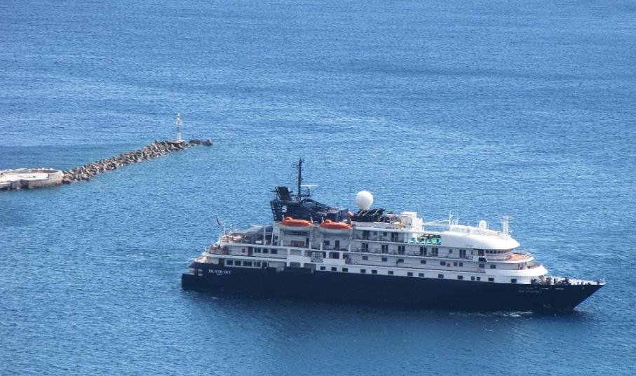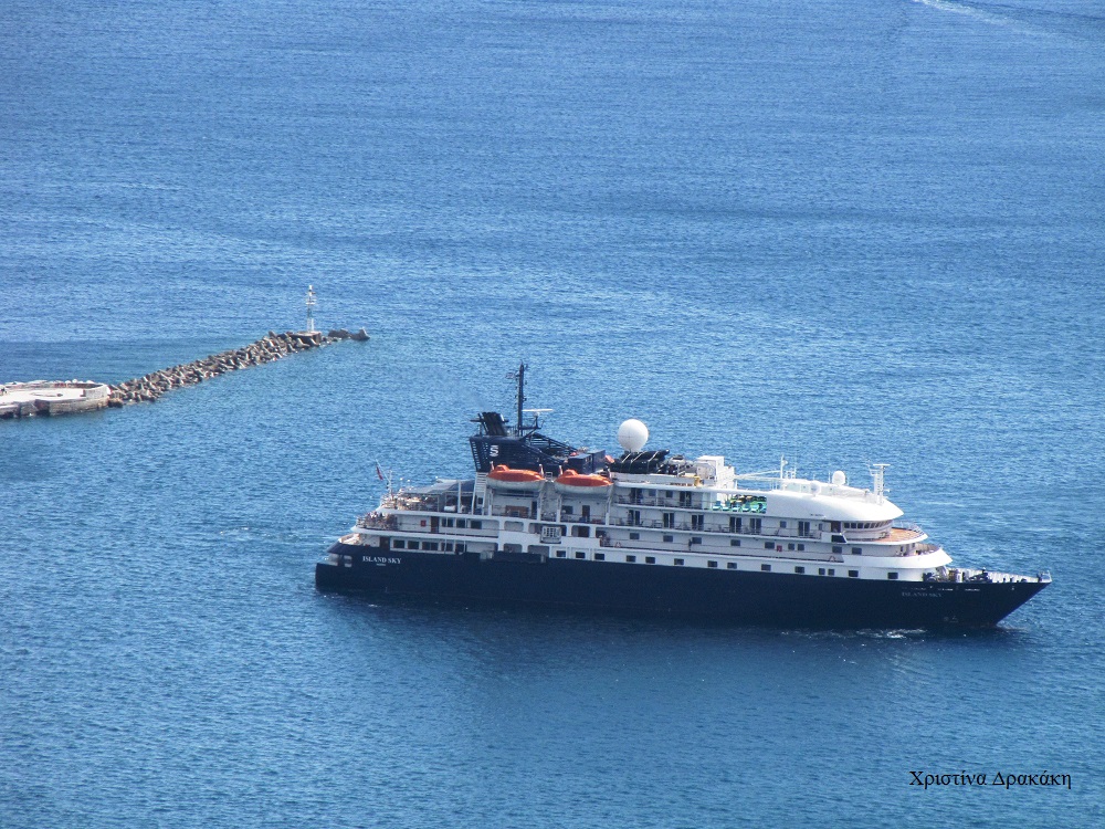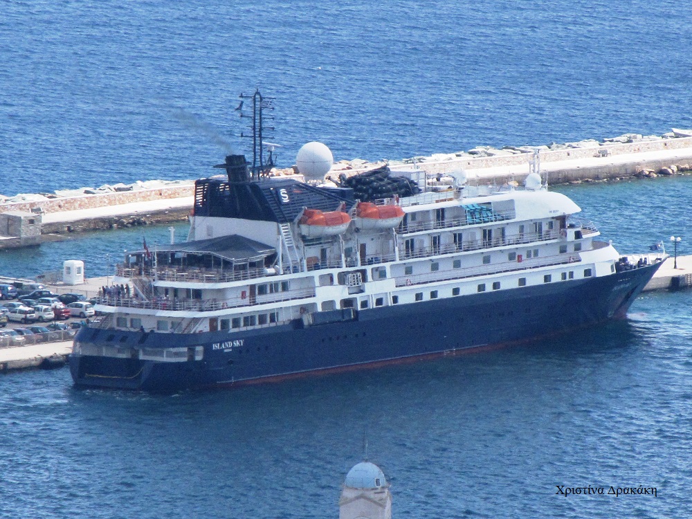 Tη Σύρο επισκέφτηκαν την Πέμπτη το μεσημέρι οι 114 επιβάτες του κρουαζιερόπλοιου ISLAND SKY, στα πλαίσια κρουαζιέρας 14 ημερών στη Μεσόγειο που ξεκίνησε από τη Λισαβώνα στις 11 Σεπτεμβρίου 2015, προσέγγισε διαδοχικά τα λιμάνια Κάντιθ,Tαγγέρη, Καρθαγένα, Πάλμα ντε Μαγιόρκα, Συρακούσες, Κατάκωλο, Ιτέα και Δήλο για να καταλήξει στο Τσανάκκαλε και να ολοκληρωθεί στην Κωνσταντινούπολη.