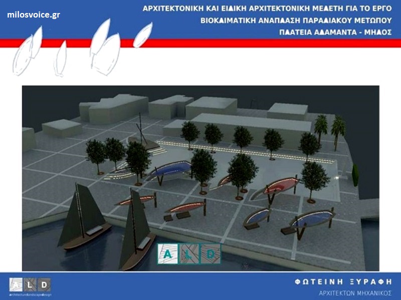 Σύμφωνα με τον κ. Δμουλάκη, κατόπιν του αιτήματος της Δημοτικής Κοινότητας, ο Δήμος Μήλου προχώρησε στην ανάθεση της μελέτης σε μία βραβευμένη αρχιτέκτονα, την κ. Φωτεινή Ξυράφη, Αρχιτέκτονα-Μηχανικό και Διευθύνουσα Σύμβουλο της εταιρείας ΑLD Αrchitecture Landscape Design, η οποία έχει αναλάβει με επιτυχία την εκπόνηση μελέτης, μεταξύ άλλων και στη Σαντορίνη.