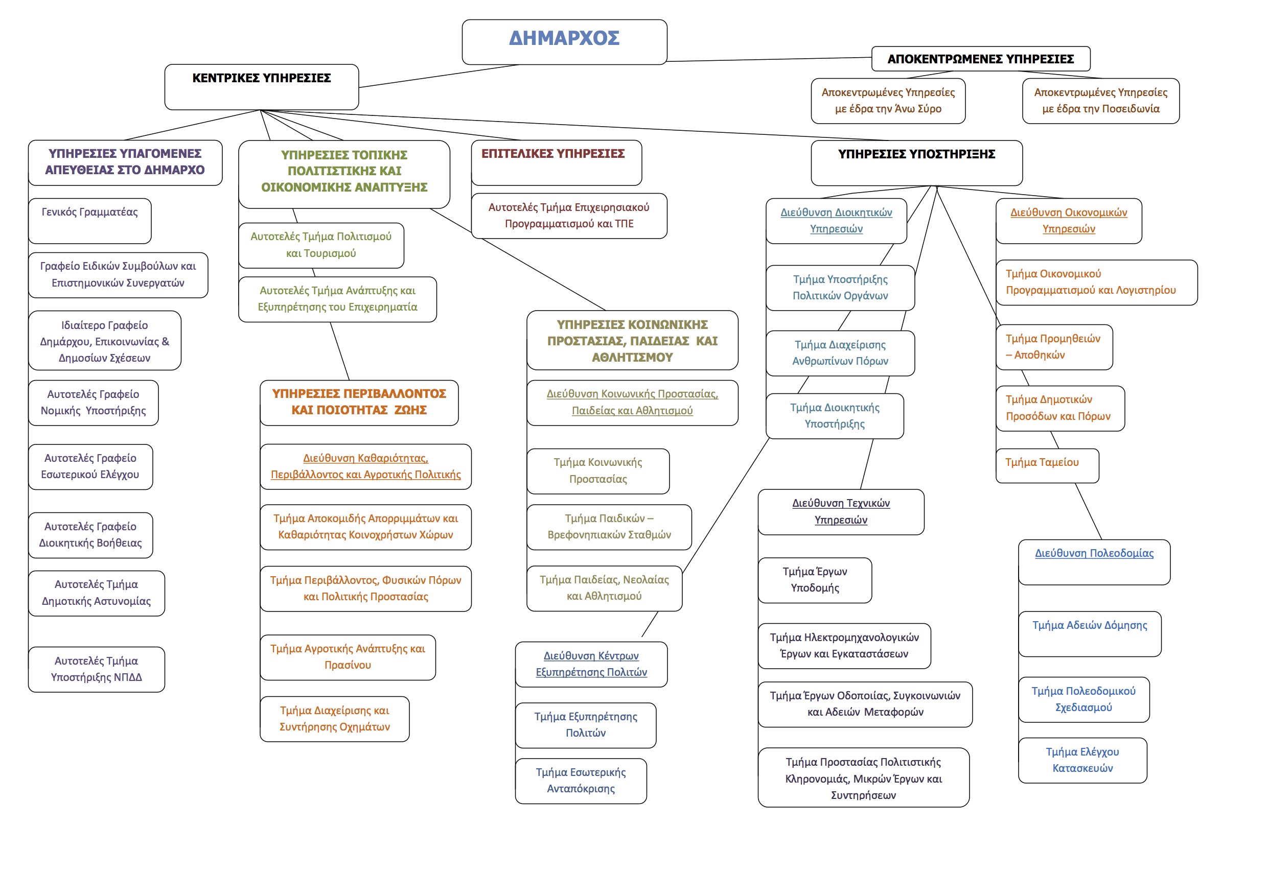 Ο ίδιος έδωσε το στίγμα των επιλογών της Δημοτικής Αρχής όσον αφορά στη λειτουργία του Δήμου στο εξής, μέσω των δημοτικών υπηρεσιών, παρουσιάζοντας τις αλλαγές σε σχέση με τον μέχρι πρότινος ισχύοντα οργανισμό καθώς και τη νέα εικόνα της δομής των υπηρεσιών, που αναλύονται σε 7 διευθύνσεις, 23 τμήματα, 5 αυτοτελή τμήματα και 3 αυτοτελή γραφεία.