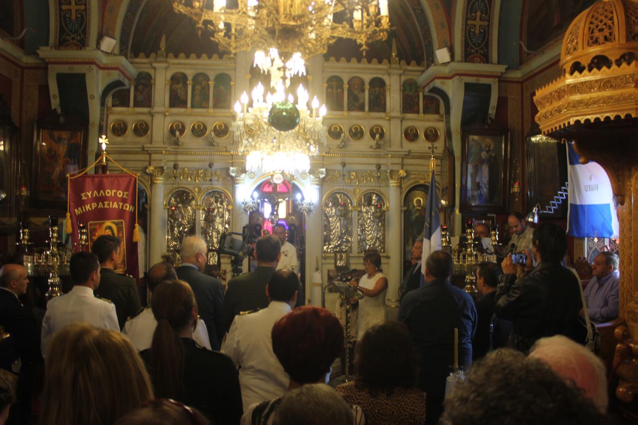 Μετά το πέρας της δοξολογίας εκφωνήθηκε ο πανηγυρικός της Ημέρας από τη Γραμματέα του Διοικητικού Συμβουλίου του Συλλόγου Μικρασιατών Ερμούπολης, Άννα Μπούμπα, η οποία αναφέρθηκε στις αλησμόνητες πατρίδες της Μικράς Ασίας που λεηλατήθηκαν, καταστράφηκαν, χάθηκαν.