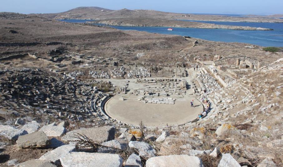 Ξετυλίγοντας το νήμα της μυθολογίας, τότε που ο μικρός βράχος στη μέση του πελάγους άρχισε να αποκτά ταυτότητα, ο κ. Μπρίγγος τόνισε: « Στη Δήλο βρίσκει καταφύγιο η Αστερία, η πετρωμένη αδερφή της Λητούς και δίνει ζωή σε δύο σπουδαίους Θεούς, τον Απόλλωνα και την Άρτεμη. Η Δήλος γίνεται θρησκευτικό κέντρο και η σπουδαιότητα του ιερού οδηγεί σε μια ευγενική άμιλλα μεταξύ των νησιών, για το ποιο νησί θα προσφέρει σπουδαιότερα έργα-αφιερώματα. Το ιερό νησί παίρνει δώρα από όλη την ελληνική επικράτεια αλλά και από τους Πτολεμαίους, Βασιλείς της Ασίας ακόμα και τον Βασιλιά της Νουμιδίας και συναγωνιζόταν τους Δελφούς και τα άλλα ακουστά ιερά του καιρού. Το νησί γίνεται μεγάλο εμπορικό κέντρο, ενώ αποτελεί τόπο διαμονής ποικιλόχρωμου πληθυσμού από κάθε γωνιά του τότε γνωστού κόσμου. Όμως, η μοναδική αυτή ανάπτυξη θα πάρει τέλος στον πόλεμο του βασιλιά Μιθριδάτη με τους Ρωμαίους με την καταστροφή και τη λεηλασία του νησιού. Είκοσι χιλιάδες άνθρωποι σφάζονται σε 1 ημέρα (88 π.Χ). Σήμερα το νησί παραμένει μοναδικό σε ολόκληρο τον κόσμο, καθώς πουθενά δεν υπάρχει ένας τέτοιος μεγάλος φυσικός νησιωτικός αρχαιολογικός χώρος, με μνημειώδη κειμήλια αρχαϊκών, κλασικών και ελληνιστικών χρόνων».