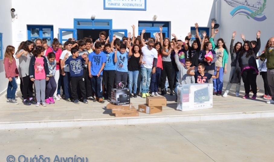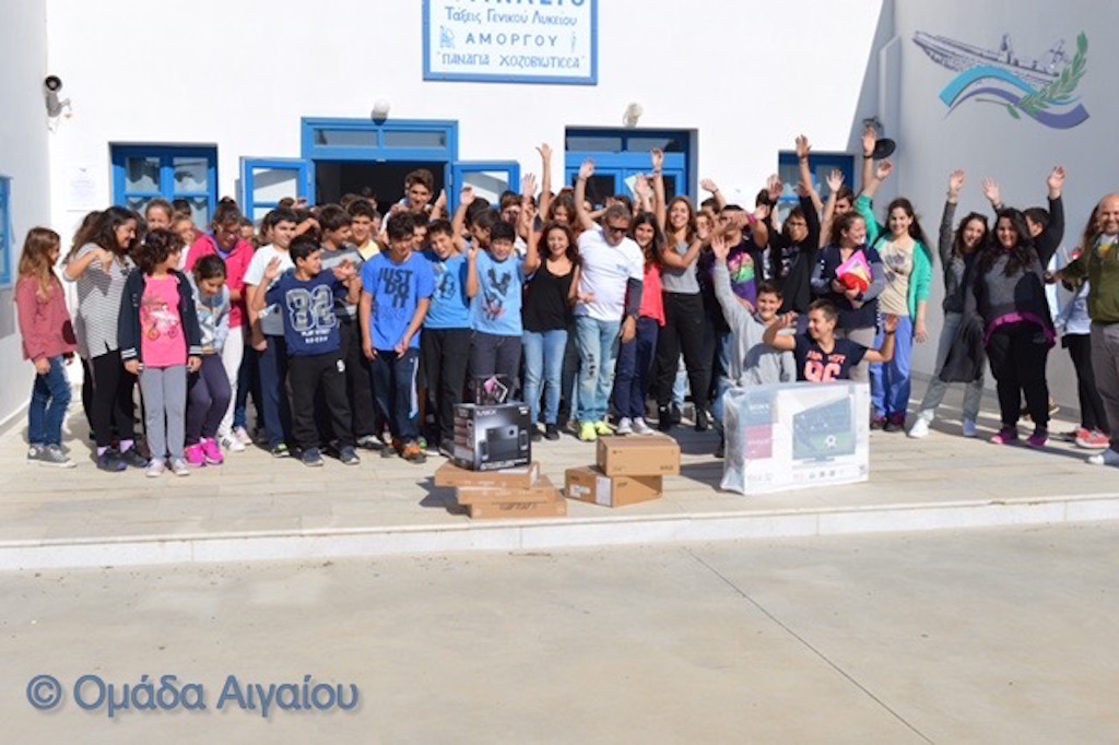Στα πλαίσια της δράσης, δωρίσθηκαν ηλεκτρονικός εξοπλισμός στο Γυμνάσιο-Λύκειο, προσφορά του Ιδρύματος Αγγελικούση και εθελοντών της Ομάδας Αιγαίου, ένα πολυμηχάνημα, ιατρικό υλικό και αναλώσιμα στο Κέντρο Υγείας, προσφορά εθελοντών της Ομάδας Αιγαίου, αναλώσιμα υλικά στο Δημοτικό Σχολείο Αρκεσίνης, προσφορά εθελοντών της Ομάδας Αιγαίου, παιδαγωγικό και αθλητικό υλικό στα σχολεία, επίσης προσφορά εθελοντών της Ομάδας Αιγαίου.
