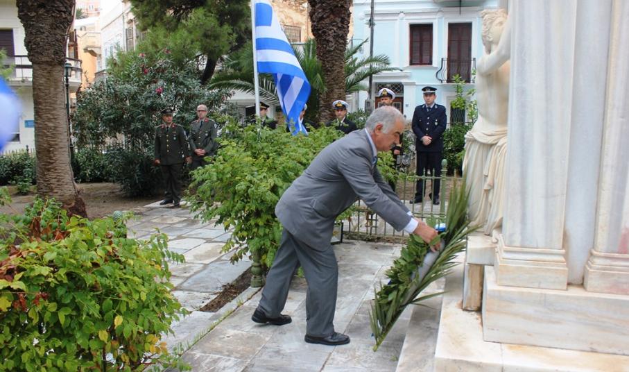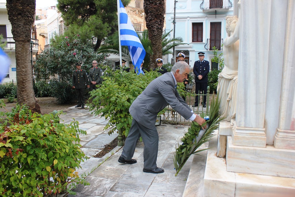 Σημειώνεται ότι στεφάνι κατέθεσαν στο Εθνικό Ηρώο της πόλης ο περιφερειακός σύμβουλος Μάρκος Δαδάος εκπροσωπώντας την Περιφέρεια Νοτίου Αιγαίου και ο αντιδήμαρχος Γιώργος Παπαμανώλης, εκ μέρους του Δήμου Σύρου – Ερμούπολης.