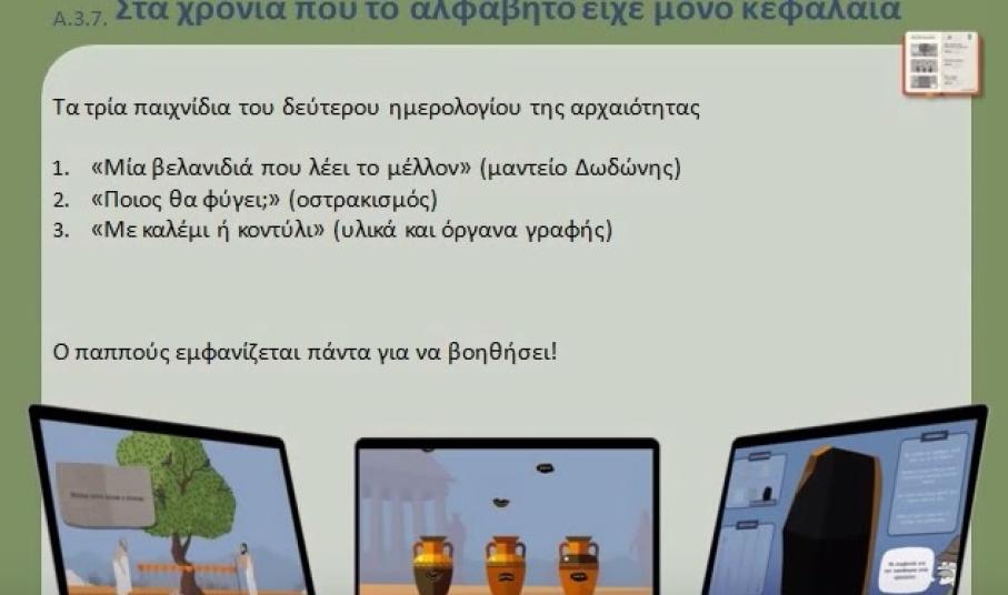 Ο φάκελος περιέχει έντυπο διαρθρωμένο σε οκτώ βασικές θεματικές ενότητες που αφορούν στη γέννηση, την εξέλιξη και τη σημασία της γραφής, εικονογραφημένο έντυπο με προτεινόμενες δραστηριότητες, ένα cd-rom με εννιά διαδραστικά παιχνίδια, ένα dvd-rom με μια δεκάλεπτη ταινία κινουμένων σχεδίων και τίτλο «Η μάχη των π».