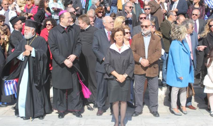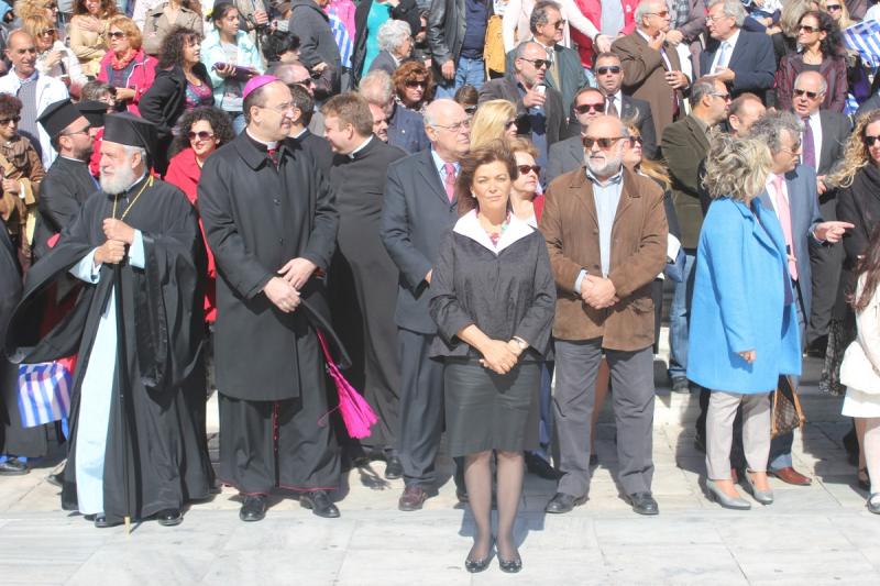 Της καθιερωμένης μαθητικής παρέλασης ανήμερα της Εθνικής Επετείου, προηγήθηκε η επίσημη Δοξολογία στον Ιερό Ναό του Αγίου Νικολάου, χοροστατούντος του Σεβασμιωτάτου Μητροπολίτη Σύρου, κ. Δωροθέου Β΄. Το «παρών» έδωσαν ο Καθολικός Επίσκοπος Σύρου Σεβ. π. Πέτρος Στεφάνου, η Αναπληρώτρια υπουργός Εργασίας Ράνια Αντωνοπούλου, οι Βουλευτές Κυκλάδων Αντώνης Συρίγος και Νίκος Συρμαλένιος, ο Δήμαρχος Σύρου – Ερμούπολης Γιώργος Μαραγκός, εκπρόσωποι των στρατιωτικών αρχών και των σωμάτων ασφαλείας, καθώς και εκπρόσωποι της εκπαίδευσης, συλλόγων και σωματείων του νησιού.