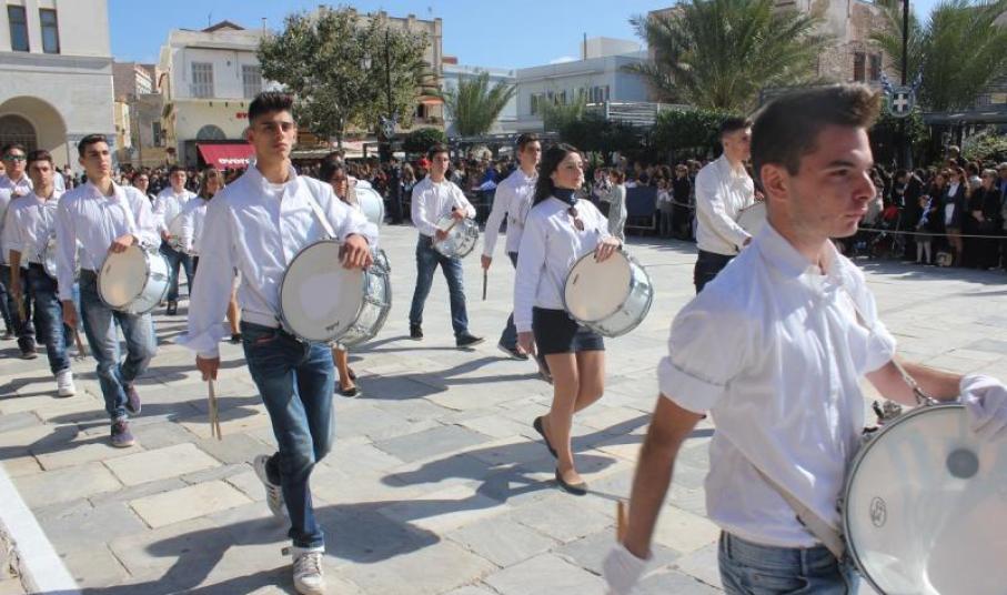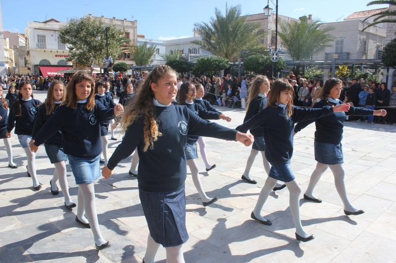 Μετά την εκφώνηση του πανηγυρικού, τελέστηκε επιμνημόσυνη δέηση στο Εθνικό Ηρώο της πόλης και κατάθεση στεφάνων από τους εκπροσώπους των τοπικών φορέων. Οι εορταστικές εκδηλώσεις κορυφώθηκαν με τη μαθητική παρέλαση στην πλατεία Μιαούλη, στην οποία συμμετείχαν επίσης η Φιλαρμονική του Δήμου Σύρου – Ερμούπολης, το Λύκειο Ελληνίδων Σύρου, ο Πολιτιστικός Σύλλογος Κρητών Σύρου, ο Σύλλογος Ποντίων και Βορειοελλαδιτών Σύρου ο Λαογραφικός Χορευτικός Όμιλος «η σοφία της παράδοσης», σπουδαστές της Ακαδημίας Εμπορικού Ναυτικού Σύρου, ο Ναυτικός Όμιλος Σύρου, ο Αθλητικός Σύλλογος Tae Kwon Do Ερμούπολης και το Σώμα Ελλήνων Προσκόπων.