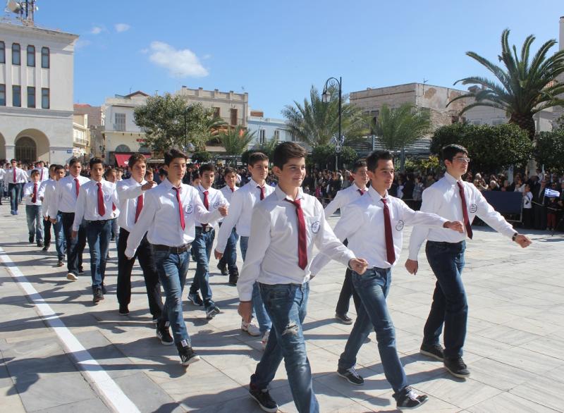 Ο διήμερος εορτασμός ξεκίνησε ανήμερα της Εθνικής Επετείου με τις καθιερωμένες εκδηλώσεις του συνόλου των σχολείων της Πρωτοβάθμιας και Δευτεροβάθμιας Εκπαίδευσης, καθώς και των σπουδαστών της Ακαδημίας Εμπορικού Ναυτικού. Μικροί και μεγάλοι μαθητές φώναξαν «ΟΧΙ» στον πόλεμο και μοιράστηκαν με γονείς και εκπαιδευτικούς συνθήματα υπέρ της ειρήνης, με την εκτίμηση ότι η διασφάλισή της είναι στο χέρι όλων μας.