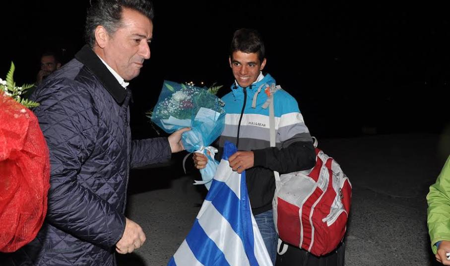 Οι δυο αθλητές του Ναυτικού Ομίλου Άνδρου έφθασαν λίγο μετά τις 8 το βράδυ της Κυριακής στο λιμάνι του Γαυρίου, όπου –παρά το τσουχτερό κρύο- τους υποδέχτηκαν ο Δήμαρχος, Θεοδόσης Σουσούδης, ο Αντιδήμαρχος Κορθίου Χρήστος (Τάκης) Βουραζέρης, η οικογένειά τους (πατέρας – μητέρα και τα οκτώ αδέλφια τους!), η Διευθύντρια του Δημοτικού Σχολείου Κορθίου κ. Μαρία Καπερώνη, αρκετοί φίλοι τους, καθώς και συναθλητές τους από τον Ναυτικό Όμιλο Άνδρου.