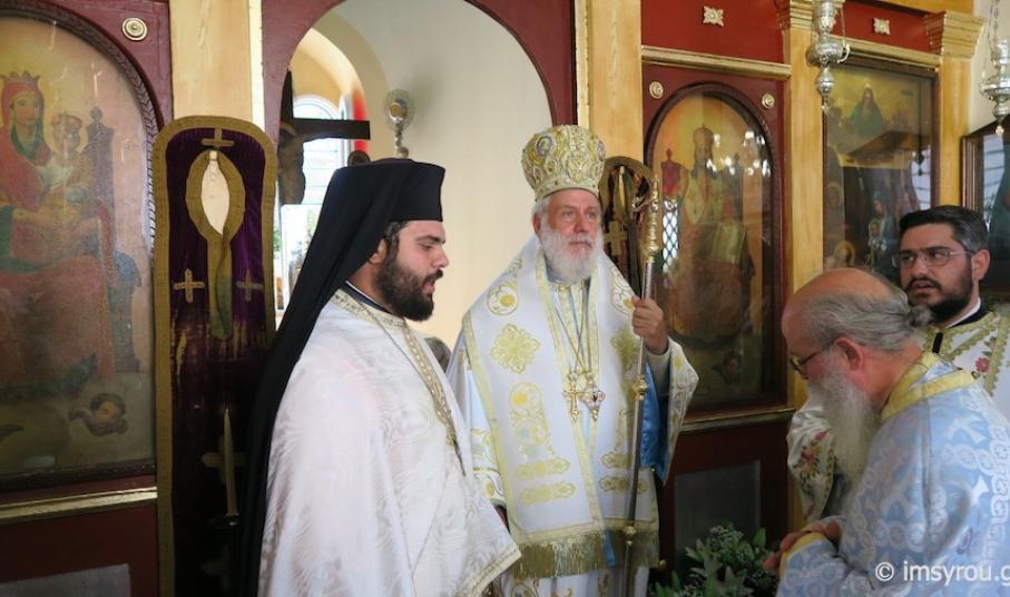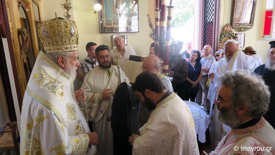 Προ του πέρατος της Θείας Λειτουργίας, ο Σεβασμιώτατος κ. Δωρόθεος Β΄ τέλεσε Μνημόσυνο των κεκοιμημένων γερόντων και γεροντισσών, οι οποίοι περιεθάλπησαν στο Ίδρυμα κατά την 40ετή λειτουργία του, και χειροθέτησε Αρχιμανδρίτη τον Ιερομόναχο Νικολάου Γαβαλά, β΄ Εφημέριο του Ι. Ναού Αναστάσεως του Σωτήρος Ερμουπόλεως.