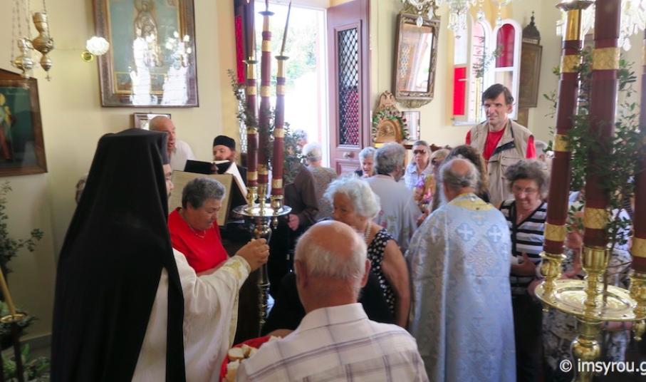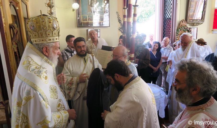 Ο Σεβασμιώτατος κ Δωρόθεος Β΄ ιερούργησε στο Καθολικό της Ιεράς Μονής του Γενεθλίου του Τιμίου Προδρόμου, Ταλάντων Σύρου, συμπαραστατούμενος από τον Ηγούμενο, Αρχιμ. Δωρόθεο Γάγγο και ιερείς της Σύρου, παρουσία της Διευθύνσεως, του Προσωπικού και των περιθαλπομένων στον εκεί στεγαζόμενο Οίκο Ευγηρίας γερόντων και γεροντισσών και πλήθους προσκυνητών.