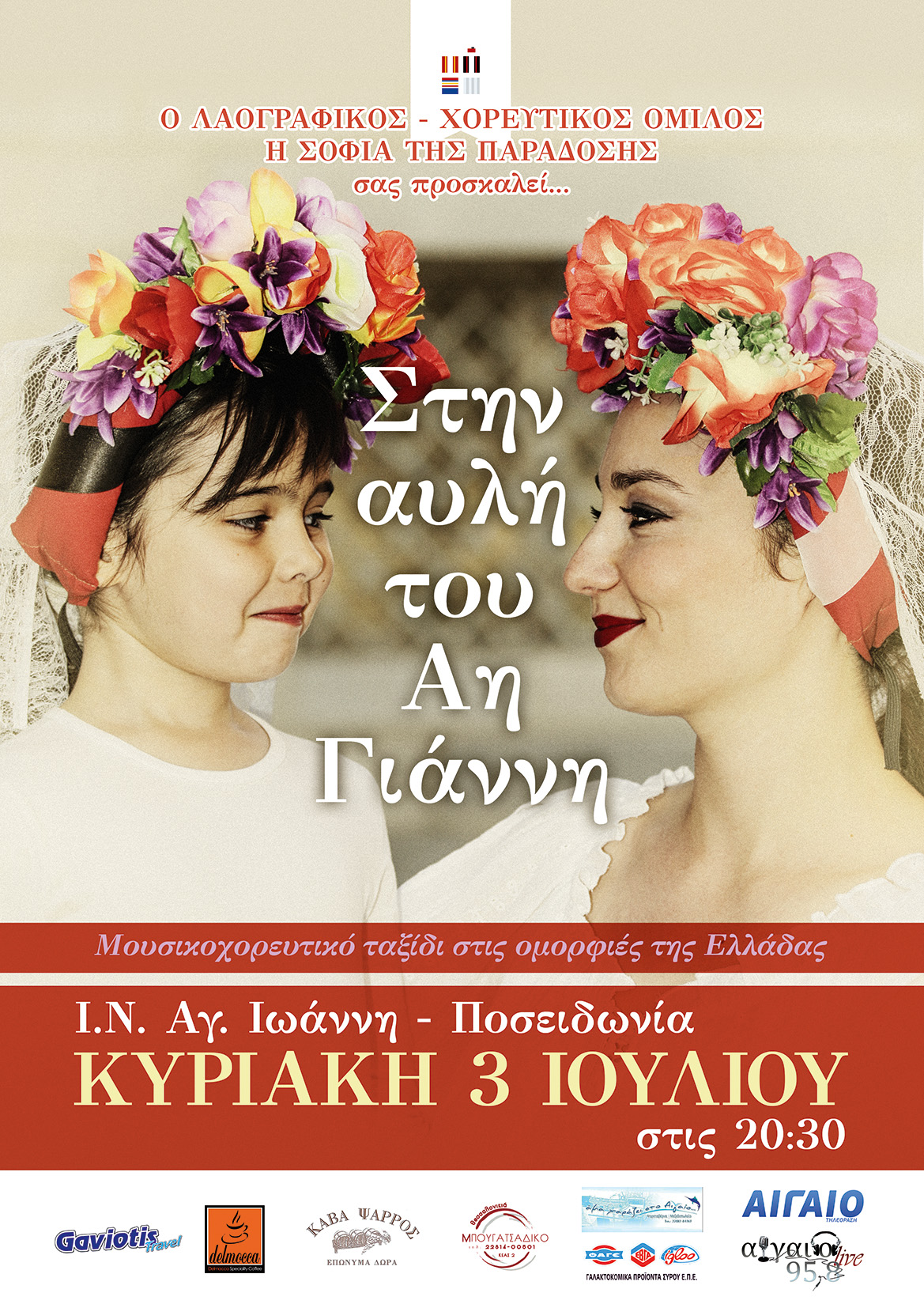 Ο Λαογραφικός – Χορευτικός Όμιλος «η σοφία της παράδοσης» σας προσκαλεί σε ένα μουσικοχορευτικό ταξίδι στις ομορφιές της Ελλάδας «Στην αυλή του Αη Γιάννη».