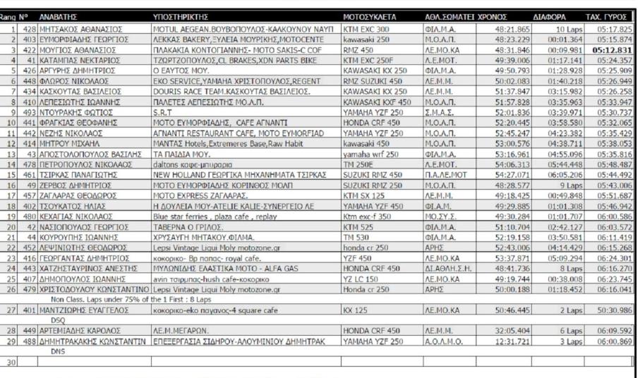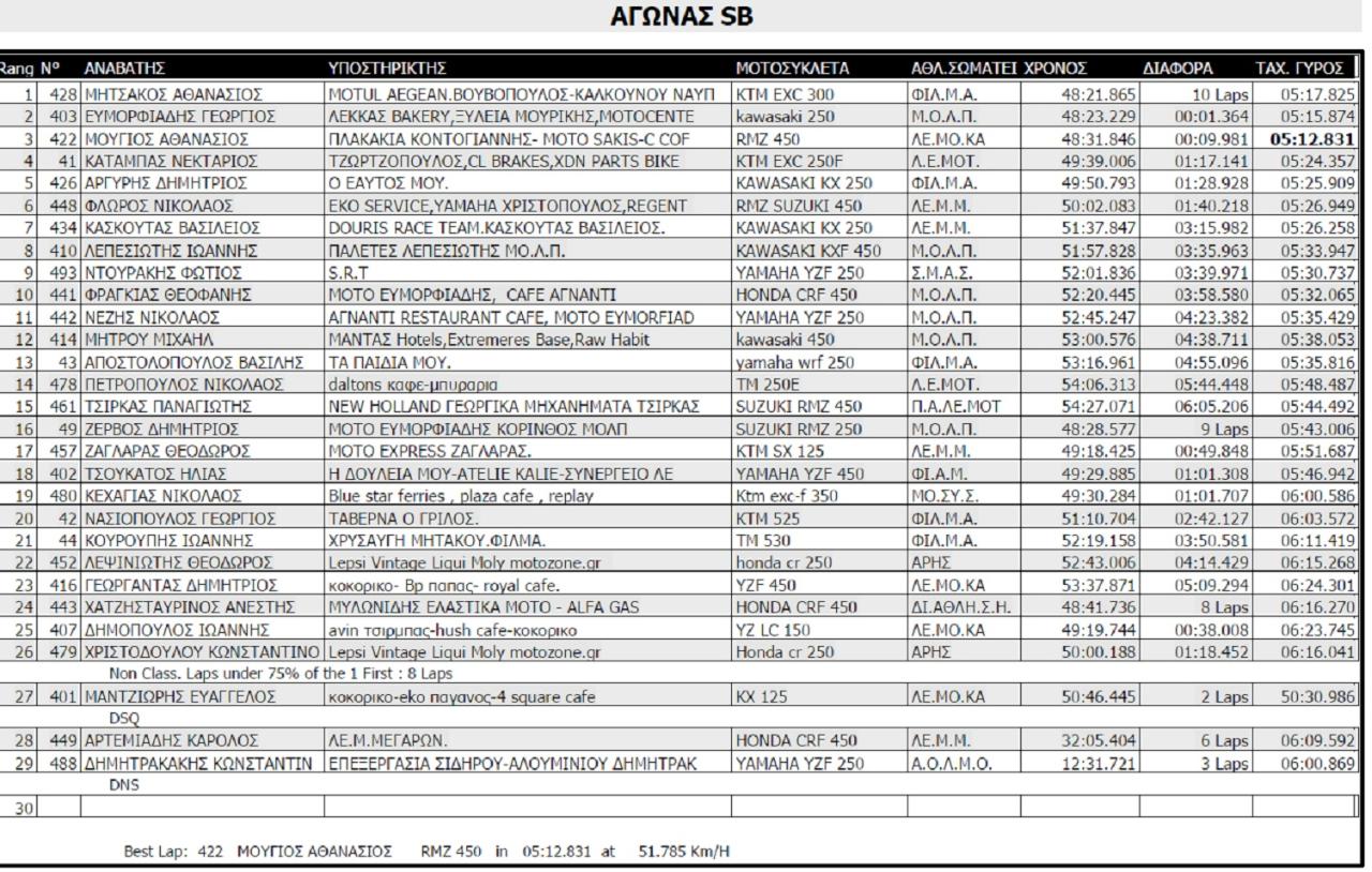 Στο αγωνιστικό κομμάτι τώρα, η Σύρος έδωσε δυναμικό παρών στον αγώνα, αφού η αποστολών των μελών του ΜΟ.ΣΥ.Σ. απαρτιζόταν από 12 άτομα, 8 οδηγών και 4 συνοδών. Ο αγώνας πραγματοποιήθηκε όπως αναφέρουμε παραπάνω στην Καράθωνα Ναυπλίου, φυσικό το οποίο, χωρίς πολλές παρεμβάσεις από τους διοργανωτές κι αυτό είχε ως αποτέλεσμα να υπάρχουν και πάρα πολλές δυσκολίες. Το χώμα και η σκόνη έκαναν δύσκολες τις συνθήκες του αγώνα, καθώς οι οδηγοί δεν είχαν καλή ορατότητα. Αυτό είχε ως αποτέλεσμα να υπάρχουν πολλές πτώσεις και συνεχώς υπήρχαν ανακατατάξεις στις θέσεις των οδηγών.