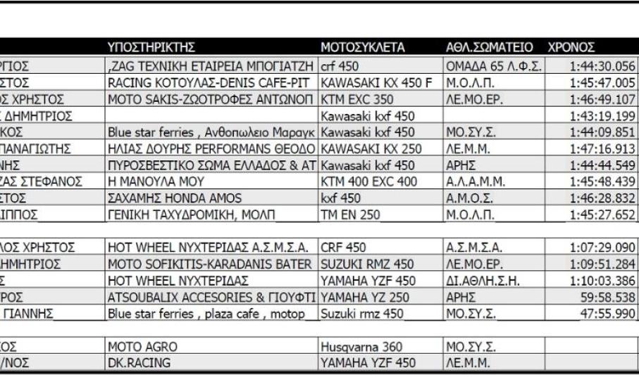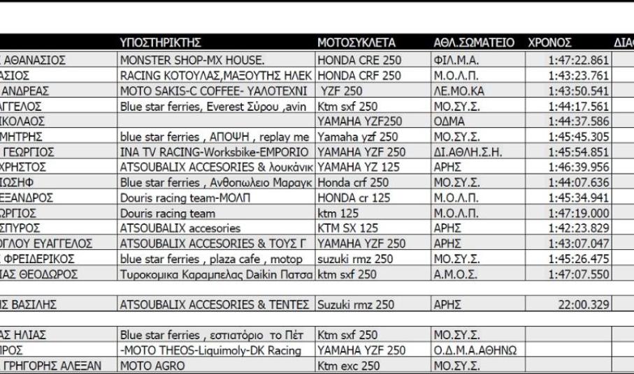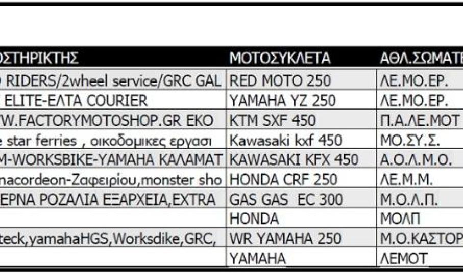 Κατηγορίες: S1, μοτοσυκλέτες 2Τ έως 144 cc και 4Τ έως 250cc και δικαίωμα συμμετοχής είχαν αθλητές 15 ετών και άνω, Μαύρο φόντο-Λευκοί αριθμοί που ξεκινούν με το ψηφίο 1.