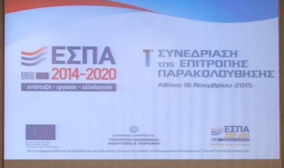Οι εργασίες της 1ης Συνεδρίασης της Εθνικής Επιτροπής Παρακολούθησης του ΕΣΠΑ 2014 – 2020 άνοιξαν εχθές στο Hotel Divani Caravel στην Αθήνα, προεδρεύοντος του υφυπουργού Οικονομίας, Ανάπτυξης και Τουρισμού, αρμόδιου για θέματα ΕΣΠΑ, Αλέξης Χαρίτση και με την συμμετοχή του νέου γενικού γραμματέα Δημοσίων Επενδύσεων και ΕΣΠΑ, Παναγιώτη Κορκολή και της γενικής διευθύντριας Περιφερειακής Πολιτικής της Ε.Ε., Σαρλίνας Βίτσεβα, ενώ συμμετείχε και ο Περιφερειάρχης Νοτίου Αιγαίου, Γιώργος Χατζημάρκος.
