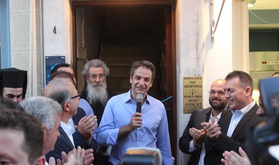Προτού ολοκληρώσει τον χαιρετισμό του, κάλεσε τα μέλη του κόμματος να εργασθούν συλλογικά για την κατάρτιση του προγράμματος της Νέας Δημοκρατίας, εξηγώντας πως, η παράταξή του, επιλέγει τον δρόμο της ανάπτυξης, αντιλαμβανόμενη “την ευθύνη που έχει, όχι μόνον απέναντι στην Ελλάδα, αλλά κι απέναντι στη Ευρώπη. Έχουμε μία ευθύνη να πολεμήσουμε και να νικήσουμε το τέρας του λαϊκισμού” δήλωσε κατηγορηματικά αποσπώντας το θερμό χειροκρότημα των παρισταμένων. Αμέσως μετά την ξενάγηση του προέδρου της ΝΔ στα γραφεία ακολούθησε λιτό κέρασμα, ενώ προηγήθηκαν οι χαιρετισμοί του βουλευτής της ΝΔ, Γιάννη Βρούτση και του προέδρου της ΝΟΔΕ Κυκλάδων, Κώστα Γαβιώτη.