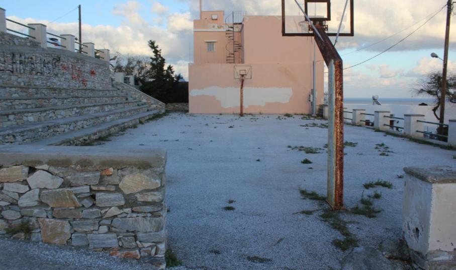Των ίδιων βελτιωτικών εργασιών χρήζει και το γήπεδο πλησίον του προαναφερθέντος χώρου, ο εξοπλισμός του οποίου είναι ακατάλληλος προς χρήση από τα παιδιά που καθημερινά βρίσκονται εκεί κατά τη διάρκεια του ελεύθερου χρόνου τους.