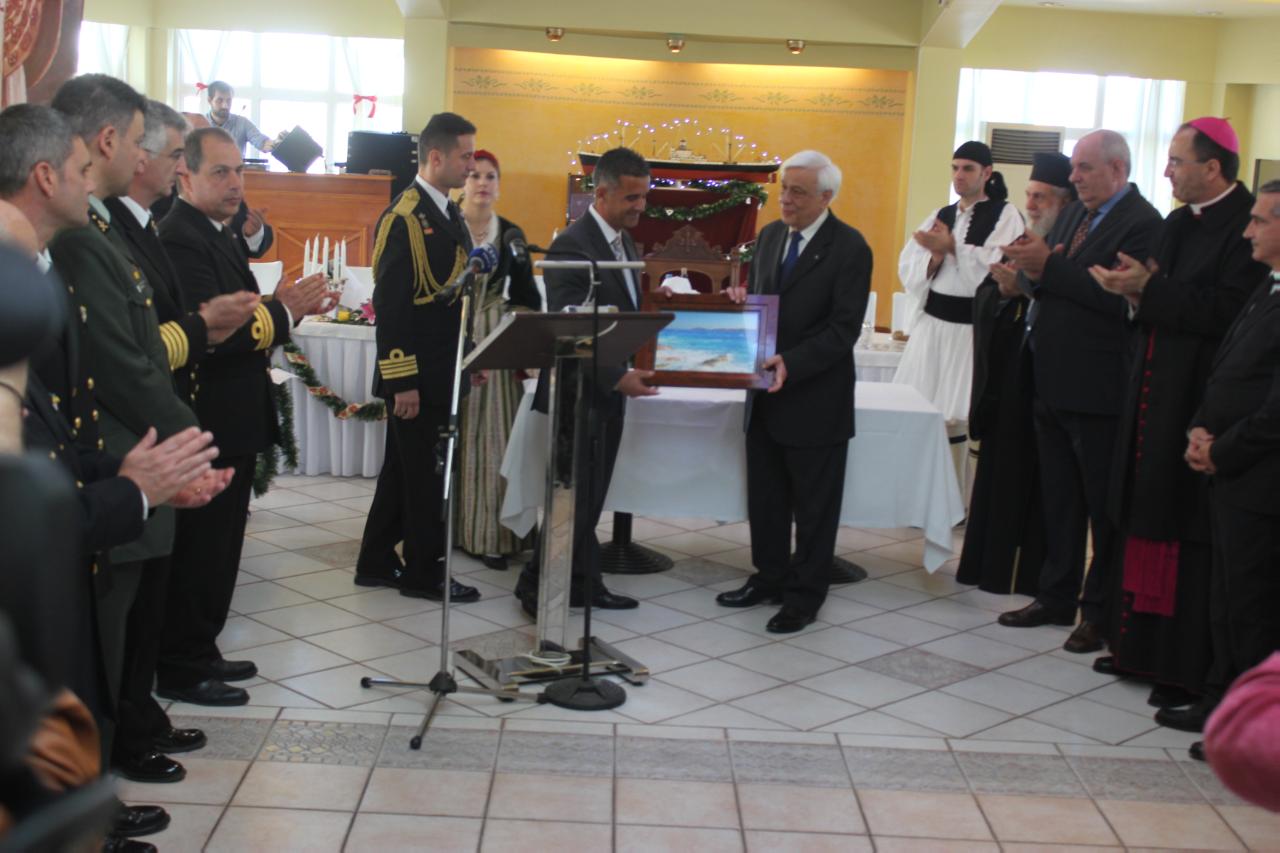 Σε γνωστό ξενοδοχείο στο κέντρο της Ερμούπολης, παρόντος και του Υφυπουργού παρά τω Πρωθυπουργό, Τέρενς Κουίκ καθώς επίσης του Σεβασμιώτατου Μητροπολίτη Σύρου, κκ. Δωροθέου Β΄, του Καθολικού Επισκόπου, Σεβ. π. Πέτρου Στεφάνου, του κυβερνητικού βουλευτή, Αντώνη Συρίγου, του Περιφερειάρχη, Γιώργου Χατζημάρκου, του αντιπεριφερειάρχη Κυκλάδων, Γιώργου Λεονταρίτη, αλλά και υψηλόβαθμων εκπροσώπων των διοικήσεων του Στρατού και των Σωμάτων Ασφαλείας, πολλών αιρετών του Α΄ και Β΄ Βαθμού της Αυτοδιοίκησης και προσώπων που υπηρέτησαν στην Τοπική Αυτοδιοίκηση, ο δήμαρχος, Γιώργος Μαραγκός υποδέχθηκε και καλωσόρισε τον Πρόεδρο της Δημοκρατίας.