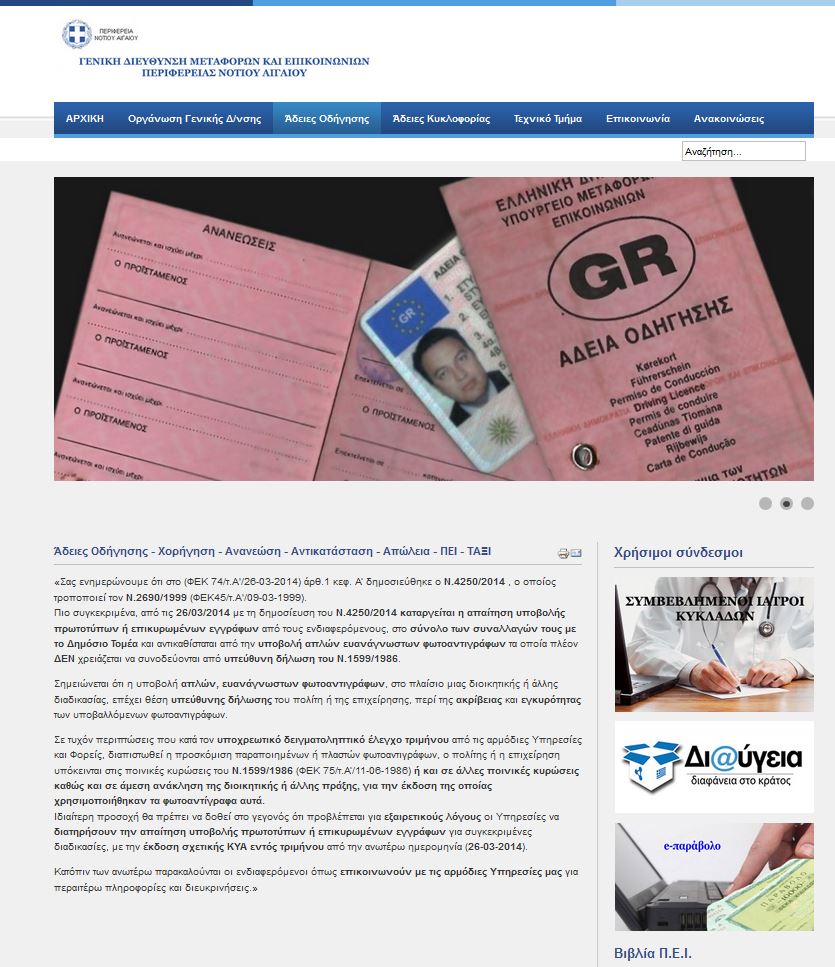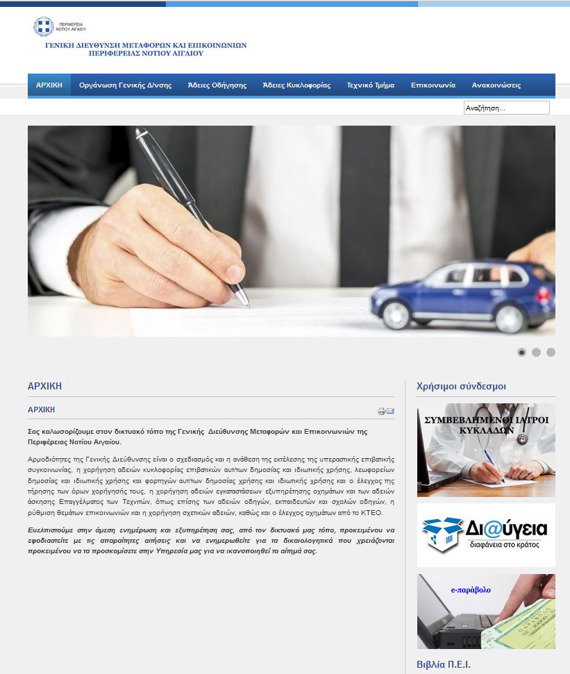 Στην ψηφιακή εποχή περνούν οι Διευθύνσεις Μεταφορών και Επικοινωνιών Δωδεκανήσου και Κυκλάδων, μέσω της εναρμόνισής τους σε μια ολοκληρωμένη διαδικτυακή πλατφόρμα, από όπου θα παρέχονται υπηρεσίες ηλεκτρονικής εξυπηρέτησης στους πολίτες όλων των νησιών της Περιφέρειας Νοτίου Αιγαίου, ακόμη και του πιο απομακρυσμένου.