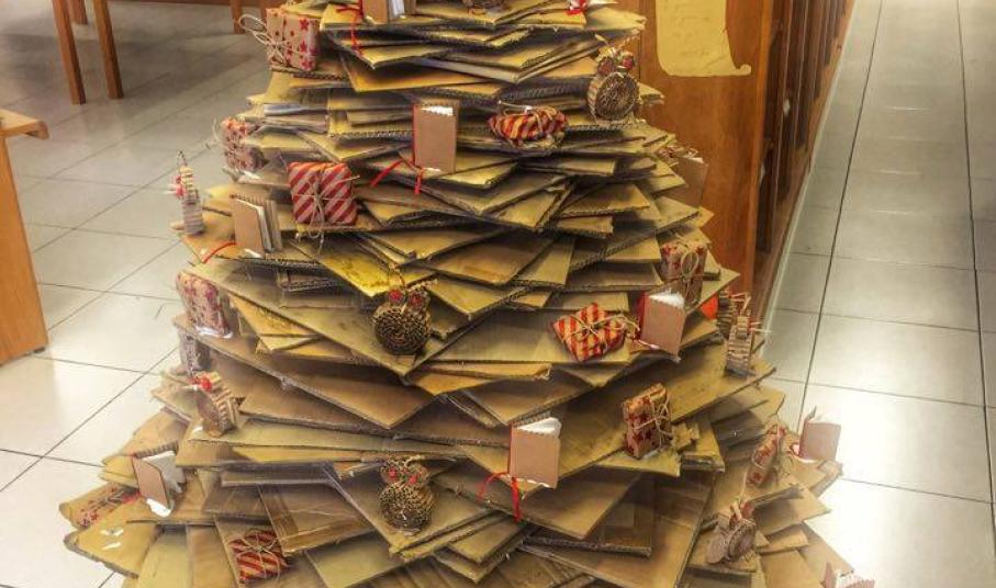 Ακολουθώντας, το πνεύμα της δράσης «Χριστούγεννα Πολιτισμός στη Σύρο με τα παιδιά μας, δέντρο θα υιοθετήσουμε είναι το μήνυμά μας», το 6ο Δημοτικό Σχολείο προσέφερε στη Δημοτική Βιβλιοθήκη Σύρου – Ερμούπολης το Χριστουγεννιάτικο δέντρο που δημιούργησε εξ’ ολοκλήρου από ανακυκλώσιμα υλικά.
