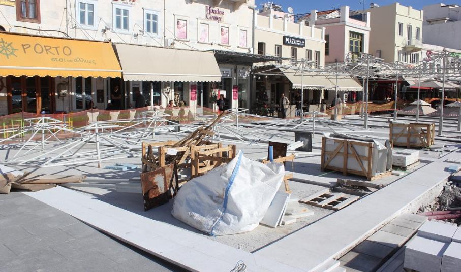Δεκαπέντε ημέρες απέμειναν έως ότου συμπληρωθεί ο χρόνος που έχει στη διάθεσή του ο Δήμος Σύρου – Ερμούπολης για την ολοκλήρωση του έργου της ανάπλασης, με τις εργασίες πλέον να εστιάζονται – κατά κύριο λόγο - στην τοποθέτηση ομπρελών και ξύλινων δαπέδων στις προβολές των επιχειρήσεων.