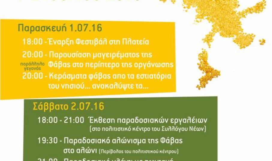 Το “χρυσάφι της γης”, όπως αποκαλούν πολλοί τη φάβα, ένα αγροτικό προϊόν υψηλής διατροφικής αξίας και ποιότητας, θα “νοστιμίσει” το πρώτο διήμερο του Ιουλίου με εκδηλώσεις μαγειρικής, αλλά και παραδοσιακό νησιώτικο γλέντι.